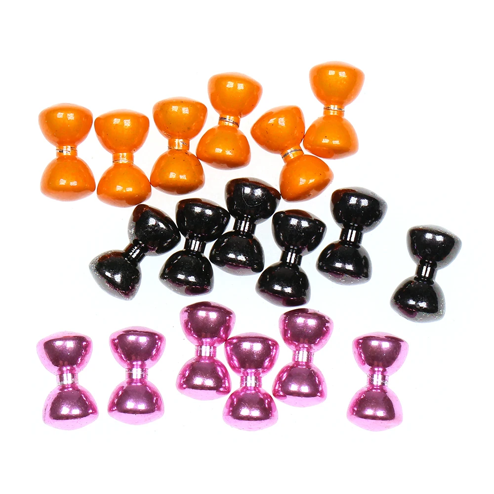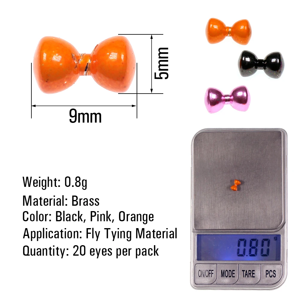 Estos son ojos de reloj de arena de latón que han sido recubiertos con polvo. En general, Estos son bastante duraderos en comparación con otros ojos en el mercado. El tyer encontrará que la forma del reloj de arena es muy agradable para unir los ojos al vástago o tubo, y los ojos crean una presentación muy agradable de su mosca.