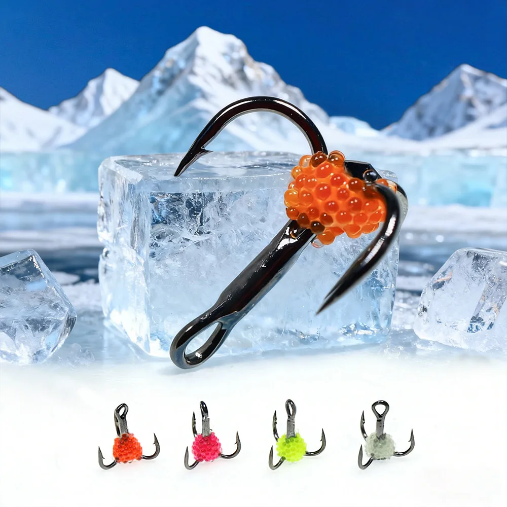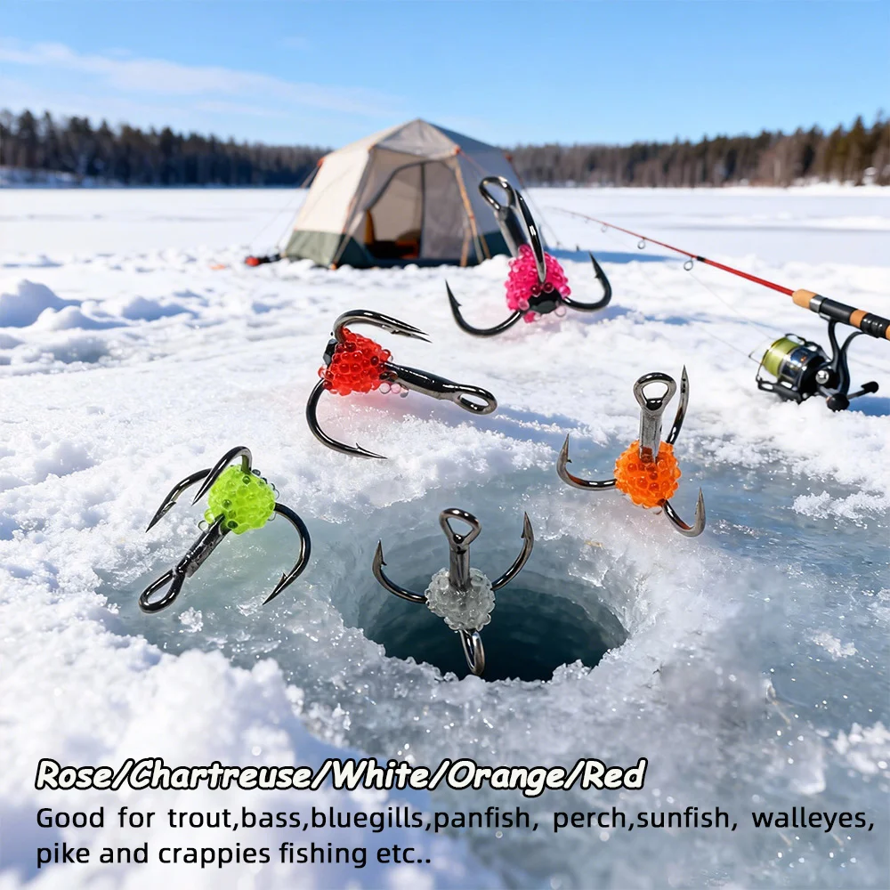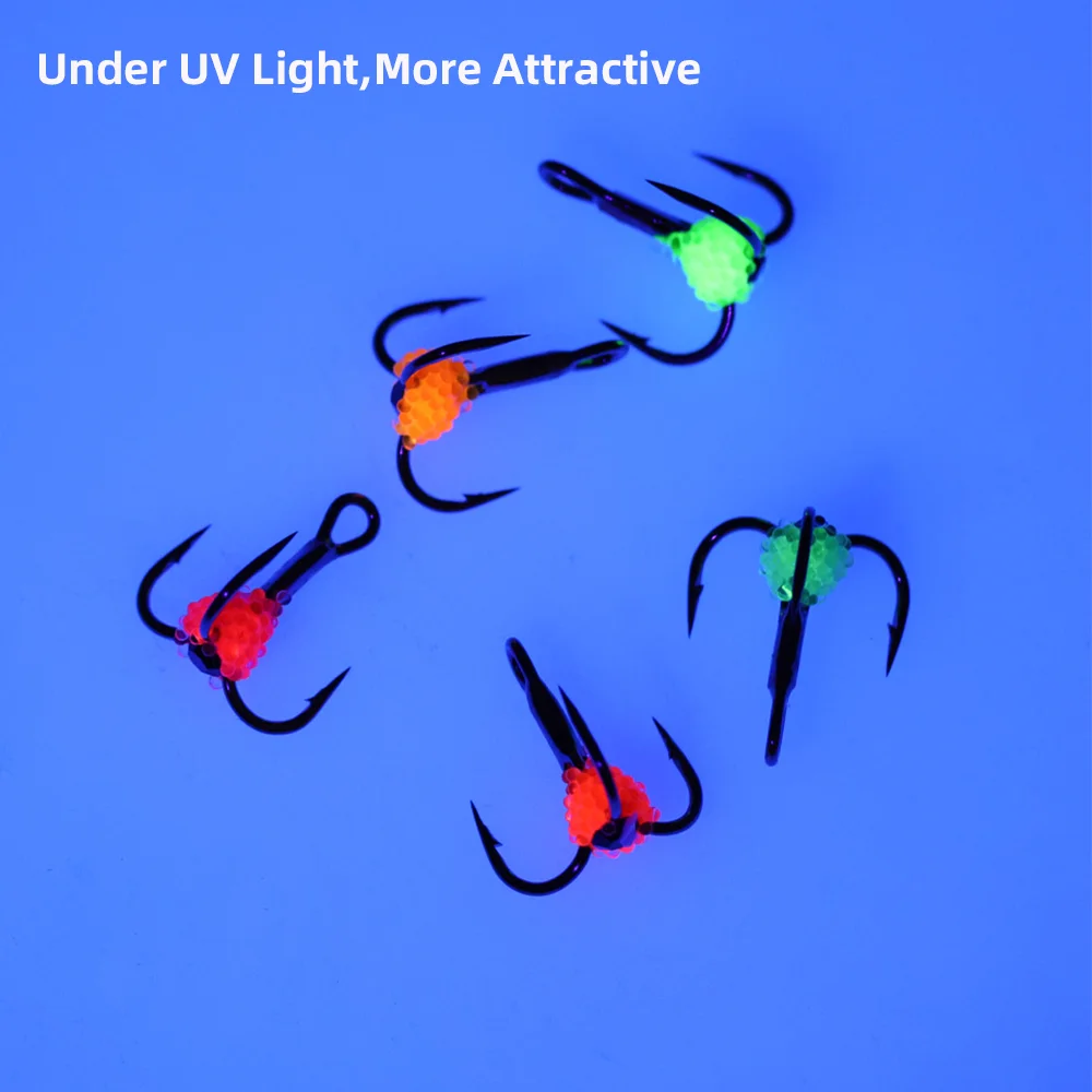 ICERIO 3 piezas/5 piezas#8~#Anzuelo triple de acero con alto contenido de carbono 14 con UV, azada de pescado realista, anzuelo triple para pesca en hielo, pesca de trucha de invierno