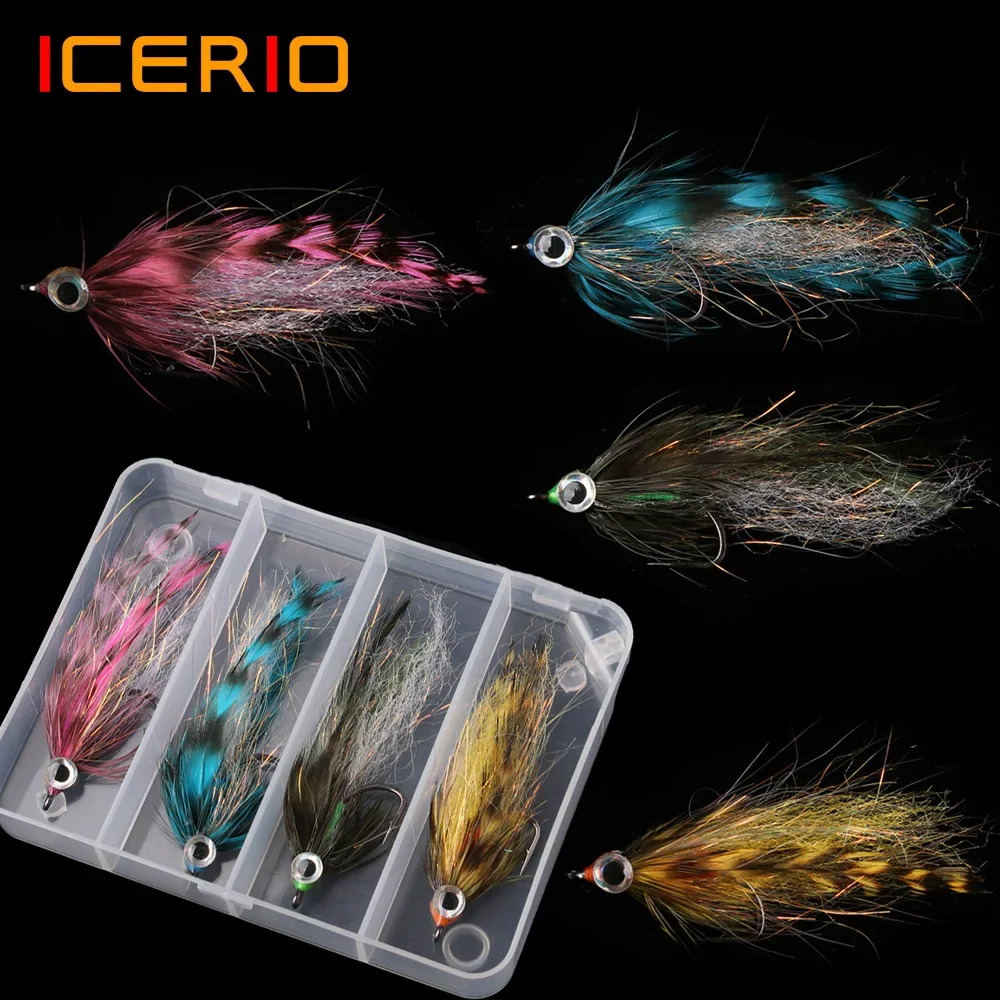 ICERIO 4 Uds 3D ojo de pez cebo serpentina mosca EP fibra sedosa cebo de agua salada pez pesca con mosca