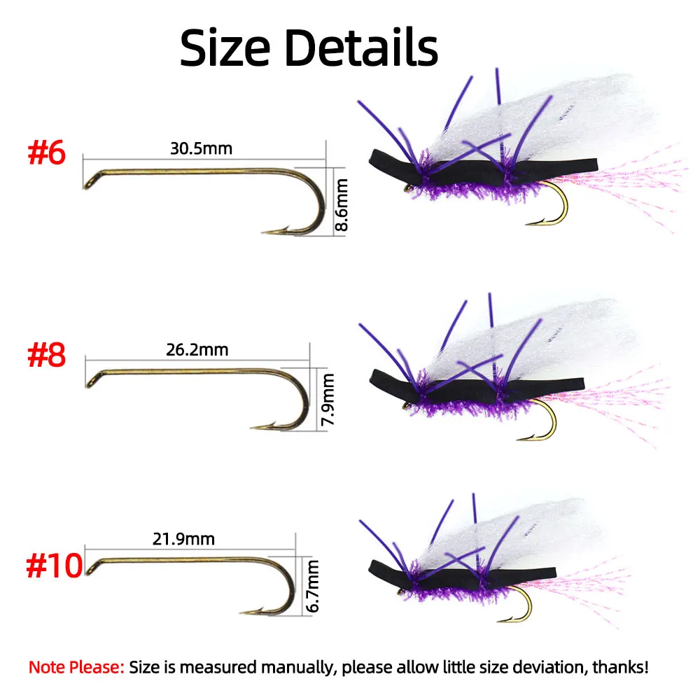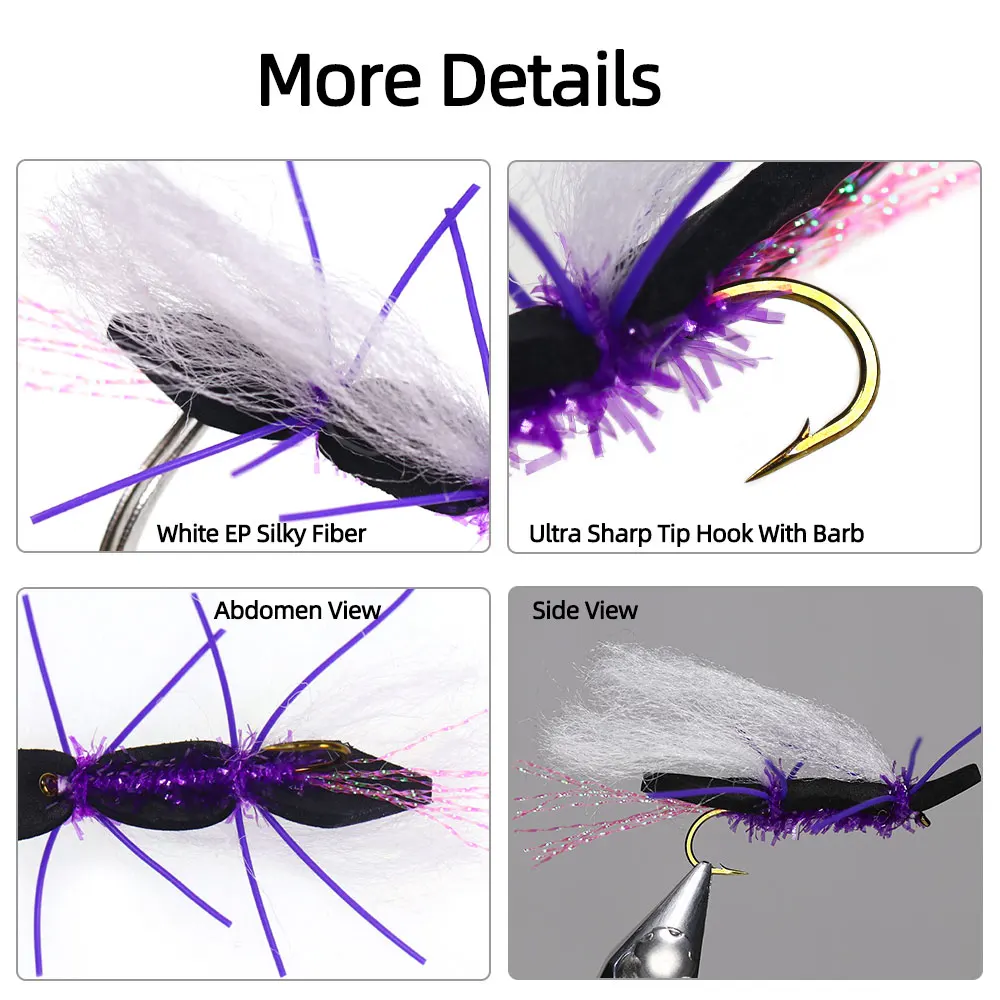 ICERIO 4 Uds pesca con mosca púrpura gordita Chernobyl moscas flotantes aguas de espuma moscas secas señuelos para trucha Lucio lubina