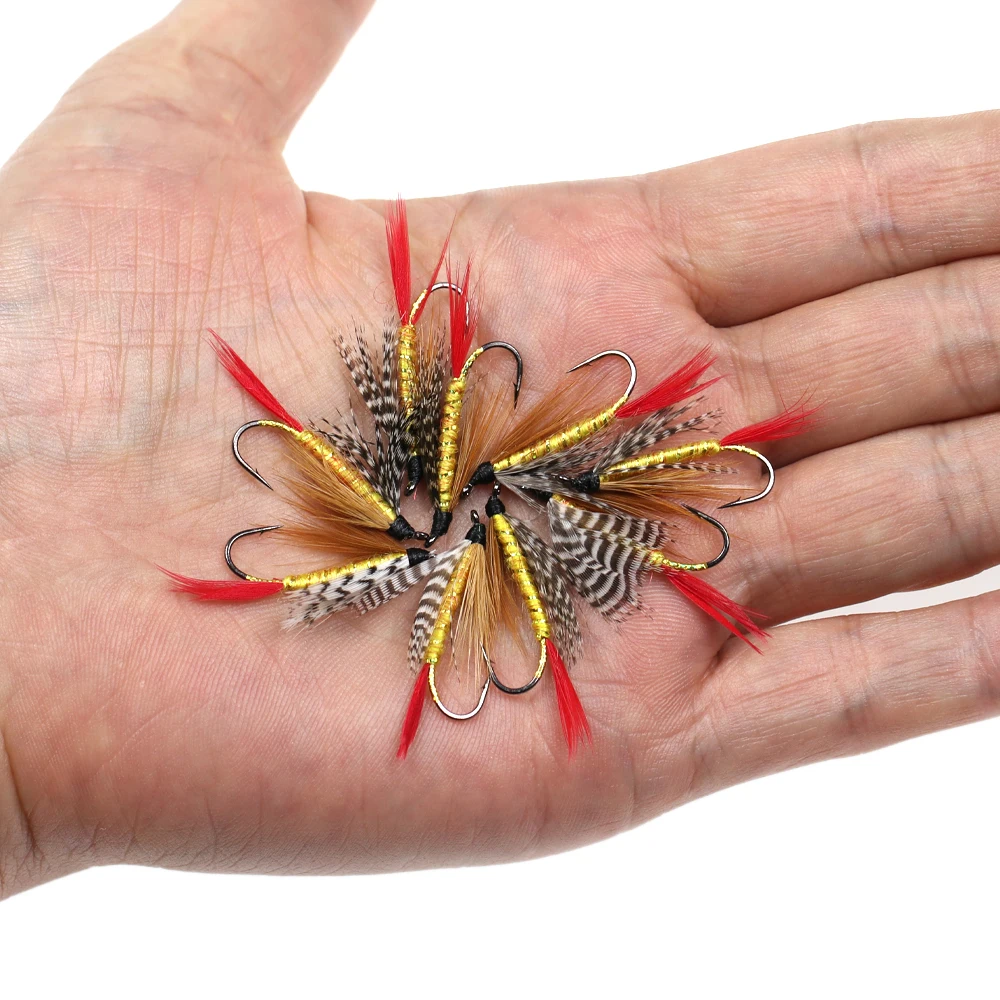 ICERIO 4 Uds Professor amarillo mosca húmeda gancho único cabeza de acero de salmón trucha pesca señuelo de mosca cebos
