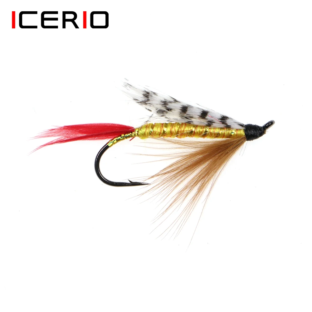 ICERIO 4 Uds Professor amarillo mosca húmeda gancho único cabeza de acero de salmón trucha pesca señuelo de mosca cebos