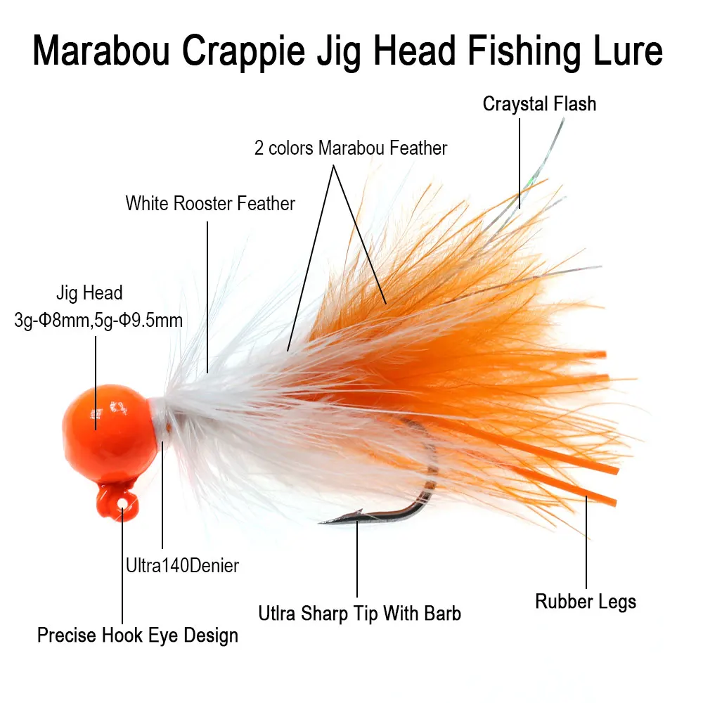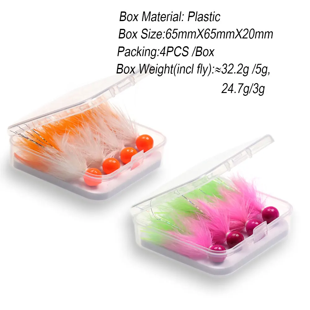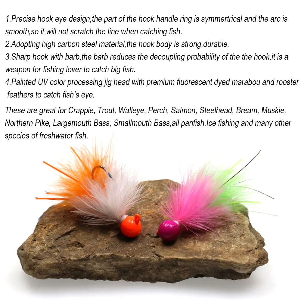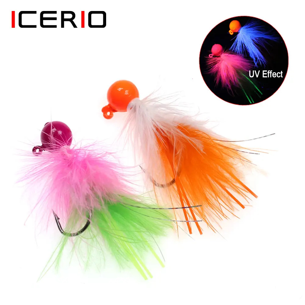 ICERIO 4 unids/caja 3g 5g UV Fluo Marabou Crappie Jig Head señuelo para trucha lubina salmón Lucio Steelhead Jig de agua salada señuelo de pesca en hielo
