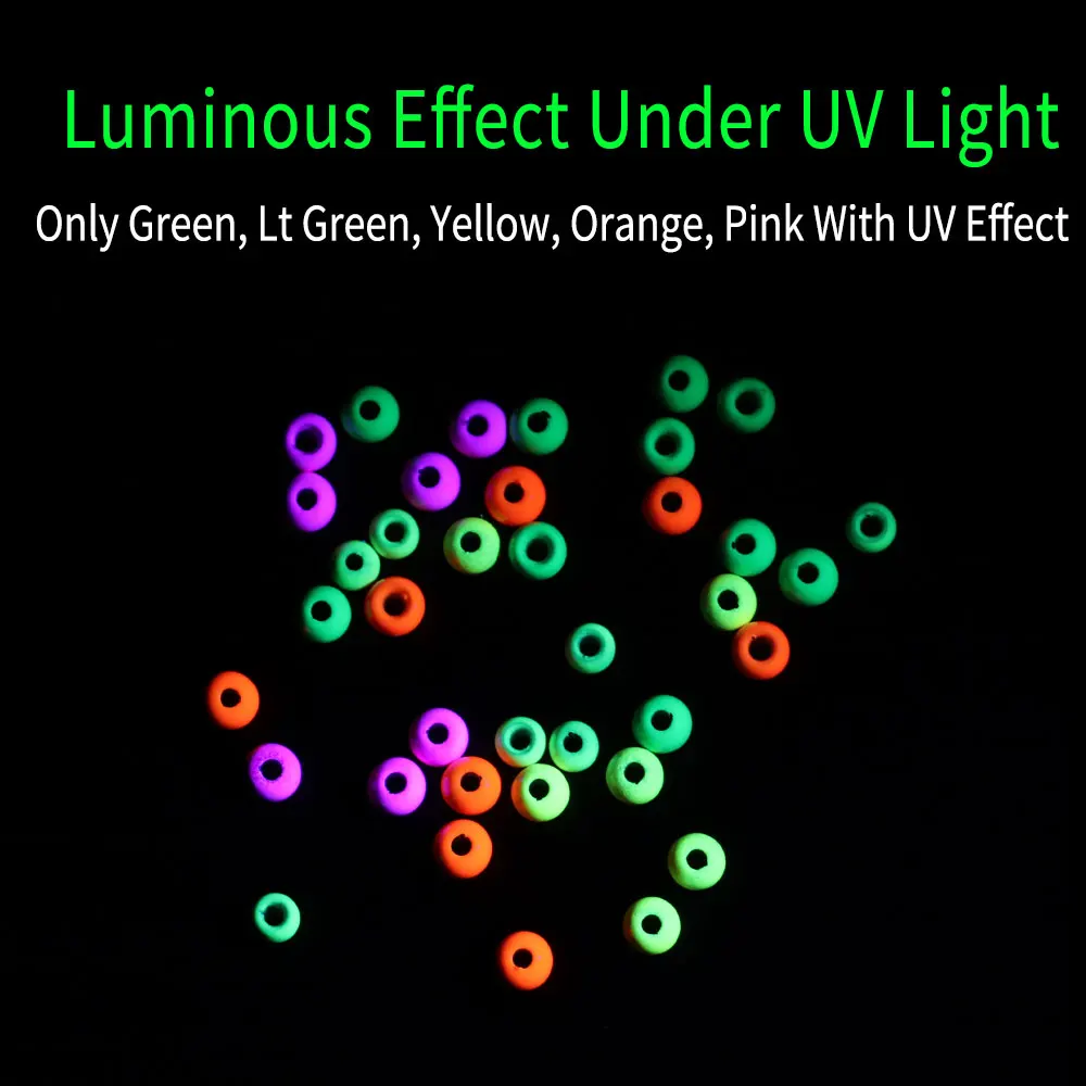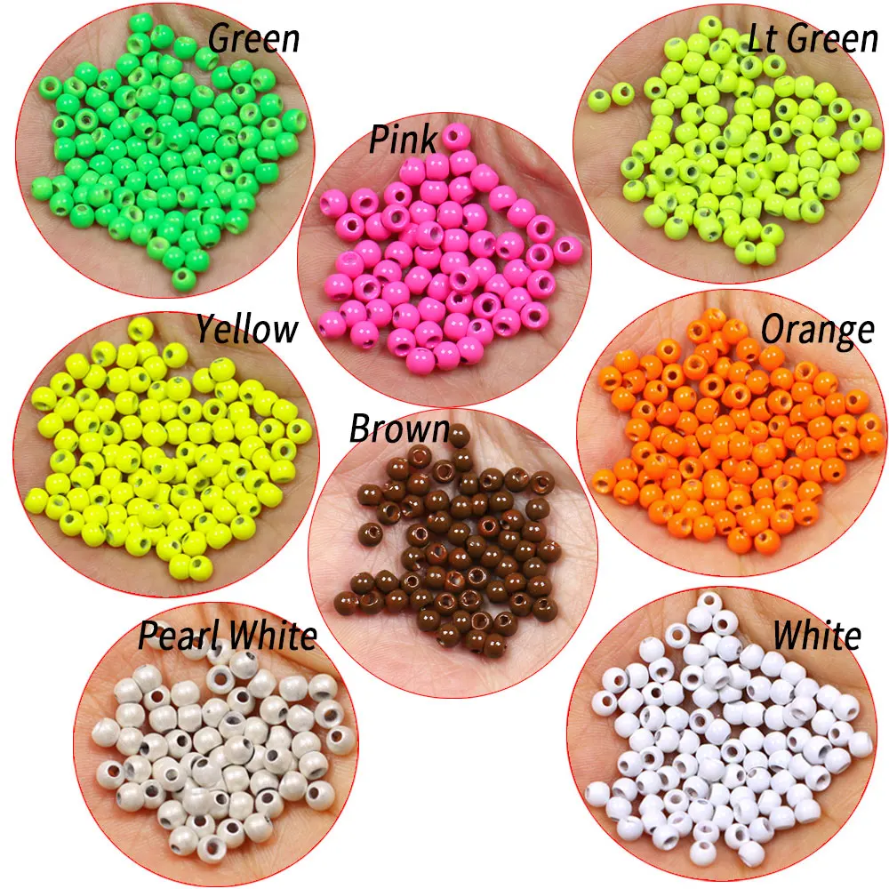 These beads is in brass material and coated paint color. Round hole with taper,And one side hole larger than the other, which makes them easier to get around the hook bend.It is a great accessories for knitting many kinds of flies' beadhead(such as nymphs,worms,scuds, streamers ,caddie's fly ect).