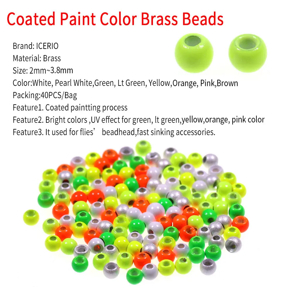 ICERIO 40PCS 2mm,2.4mm,2.8mm,3.2mm Coated Paint Color UV Fluo Brass Beads Fly Tying Material Fly Bead Head Accessories Orange