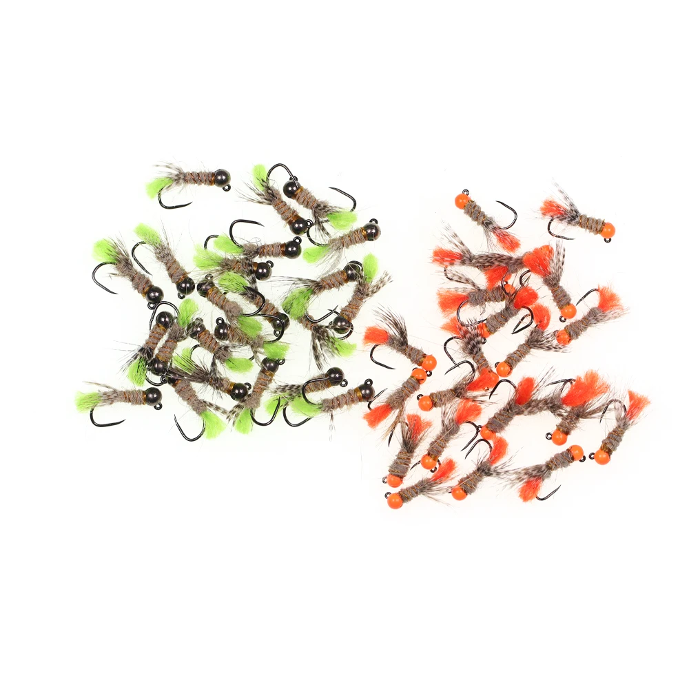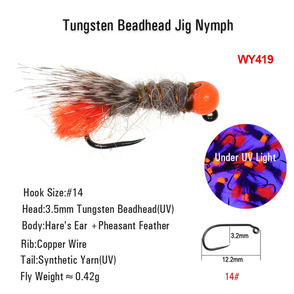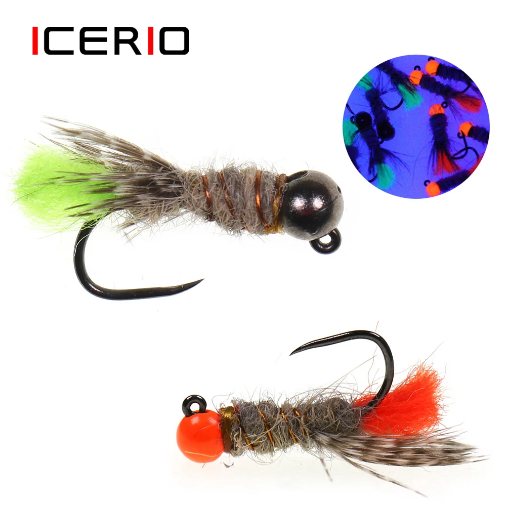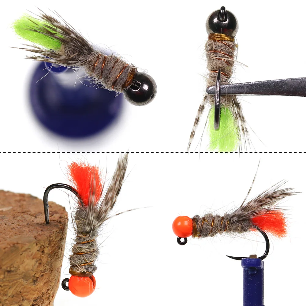 ICERIO 4 Uds. Plantilla de cuentas de tungsteno ninfas moscas oreja de Hare Dub ninfa euro anzuelo de plantilla de mosca señuelo de pesca de trucha de hundimiento rápido#14-#12