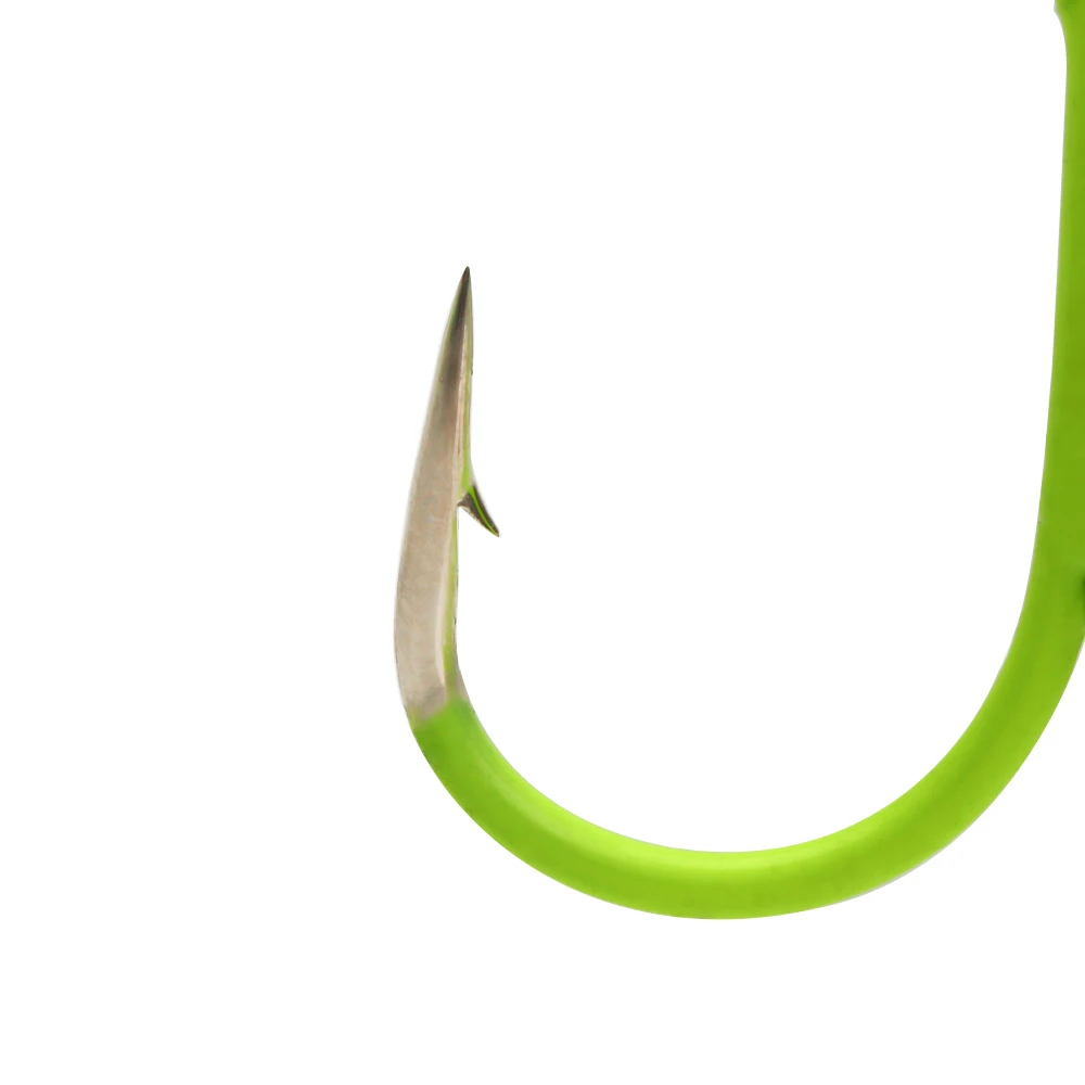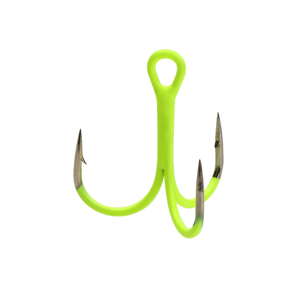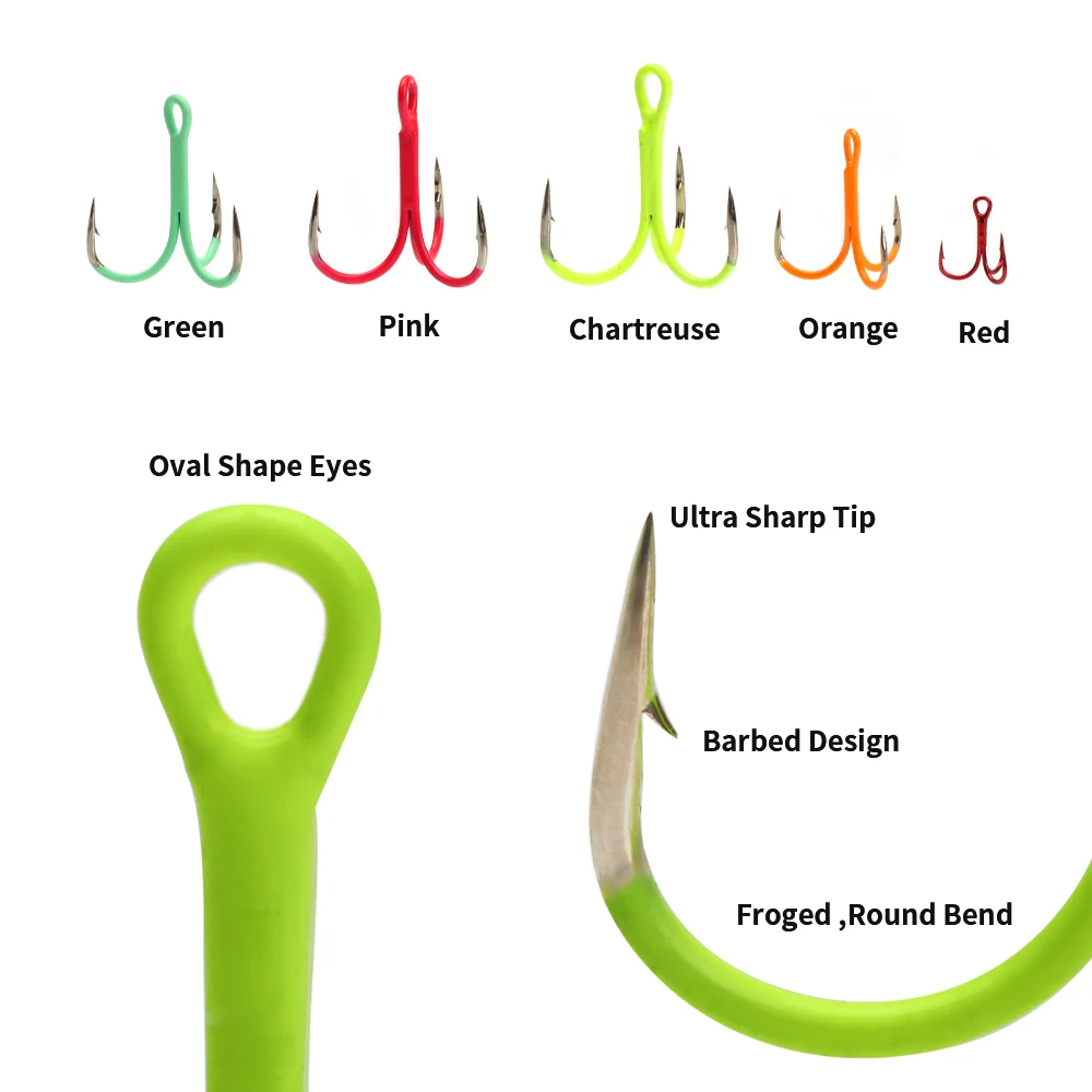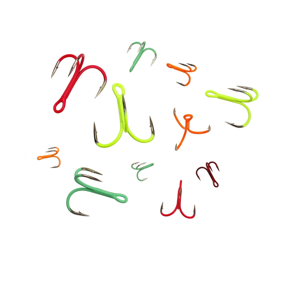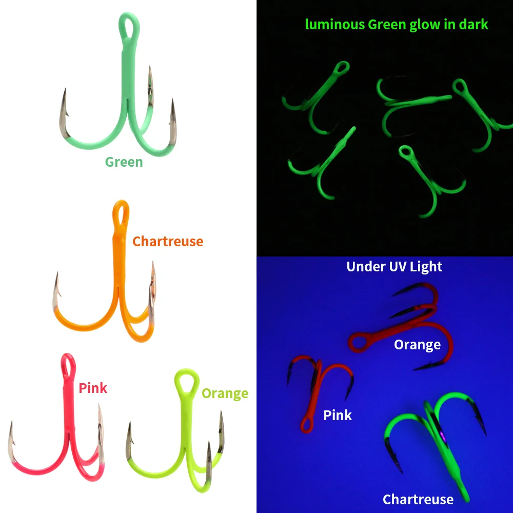 ICERIO 5/10 piezas 14#-3/0# Anzuelos triples en línea doblados redondos fluorescentes/luminosos, señuelo de pesca de agua dulce y salada, anzuelo triple