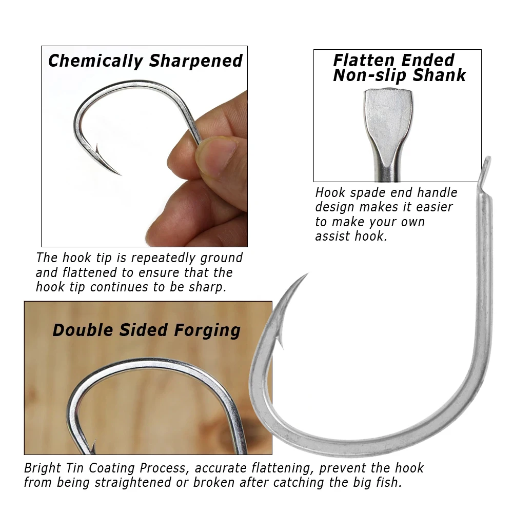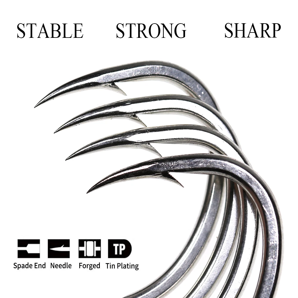 ICERIO 50 Uds anzuelo de asistencia de Jigging lento mango de pala de estaño brillante Lucio forjado atún lubina antifrosión anzuelos de pesca de agua salada
