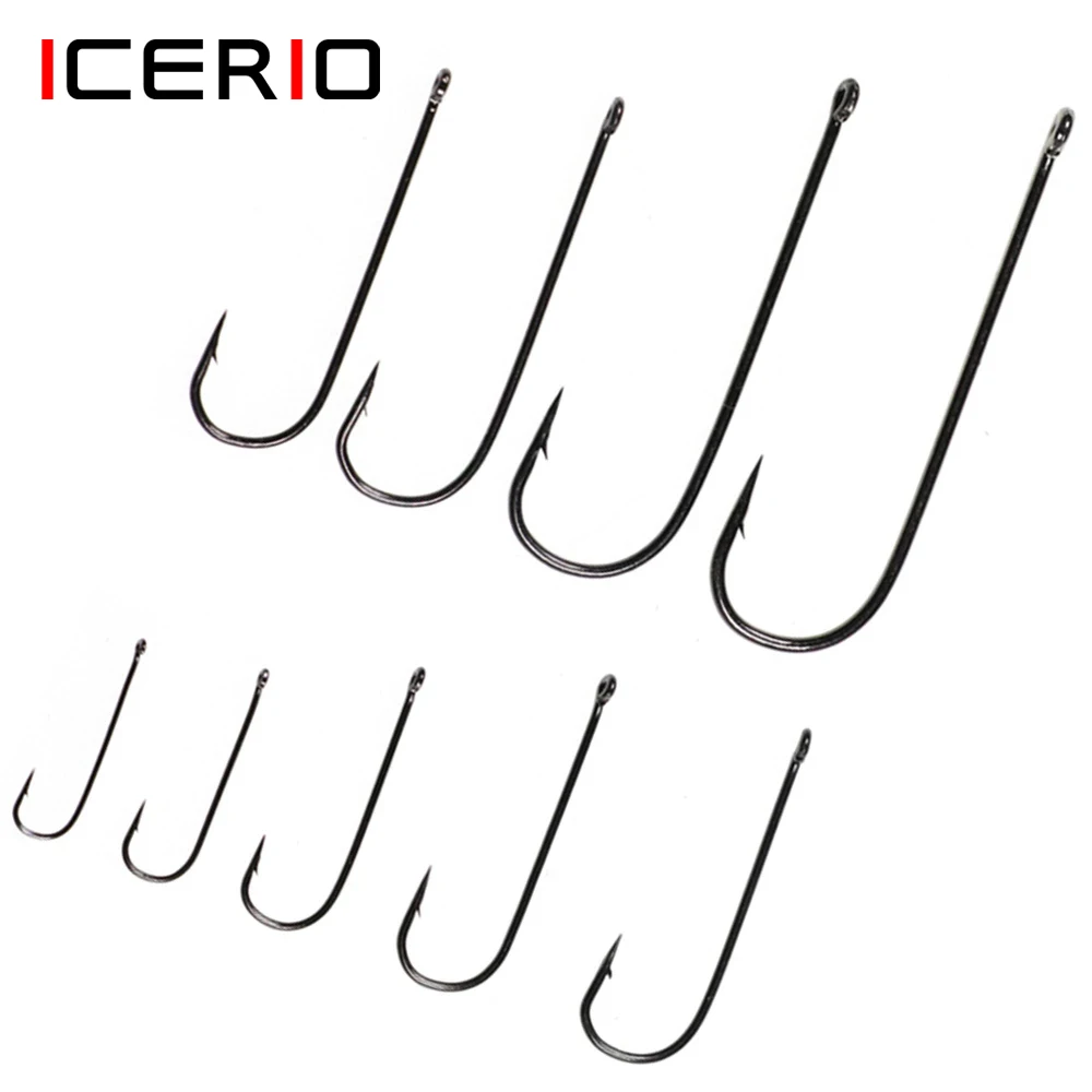 ICERIO 50 Uds Aberdeen anzuelo de pesca de vástago largo agua salada anzuelos de pesca de agua dulce Sabiki aparejo serpentina anzuelo de mosca tamaño 10 4 2/0 3/0