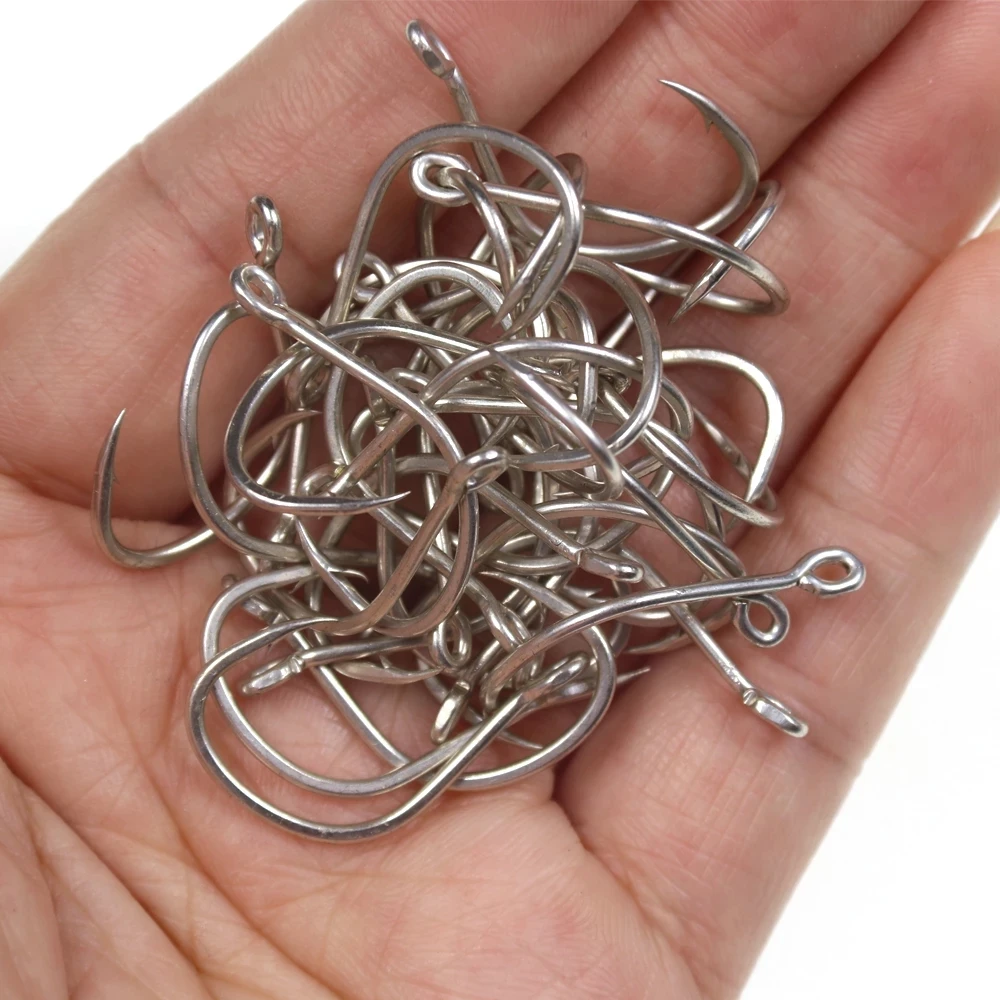 ICERIO 50 Uds. Anzuelos de agua salada antioxidantes de estaño brillante anzuelo de púas de acero con alto contenido de carbono anzuelo de ayuda Jigging señuelo