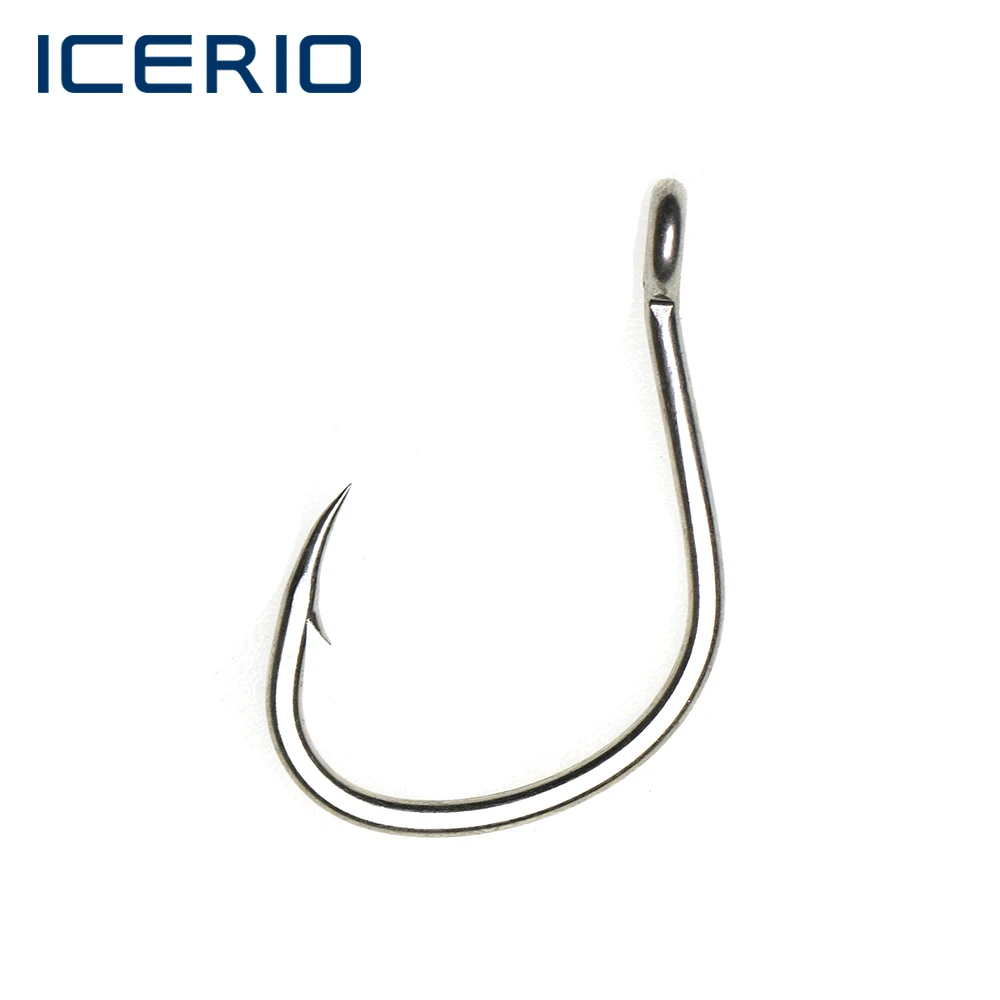 ICERIO 50 Uds. Anzuelos de agua salada antioxidantes de estaño brillante anzuelo de púas de acero con alto contenido de carbono anzuelo de ayuda Jigging señuelo