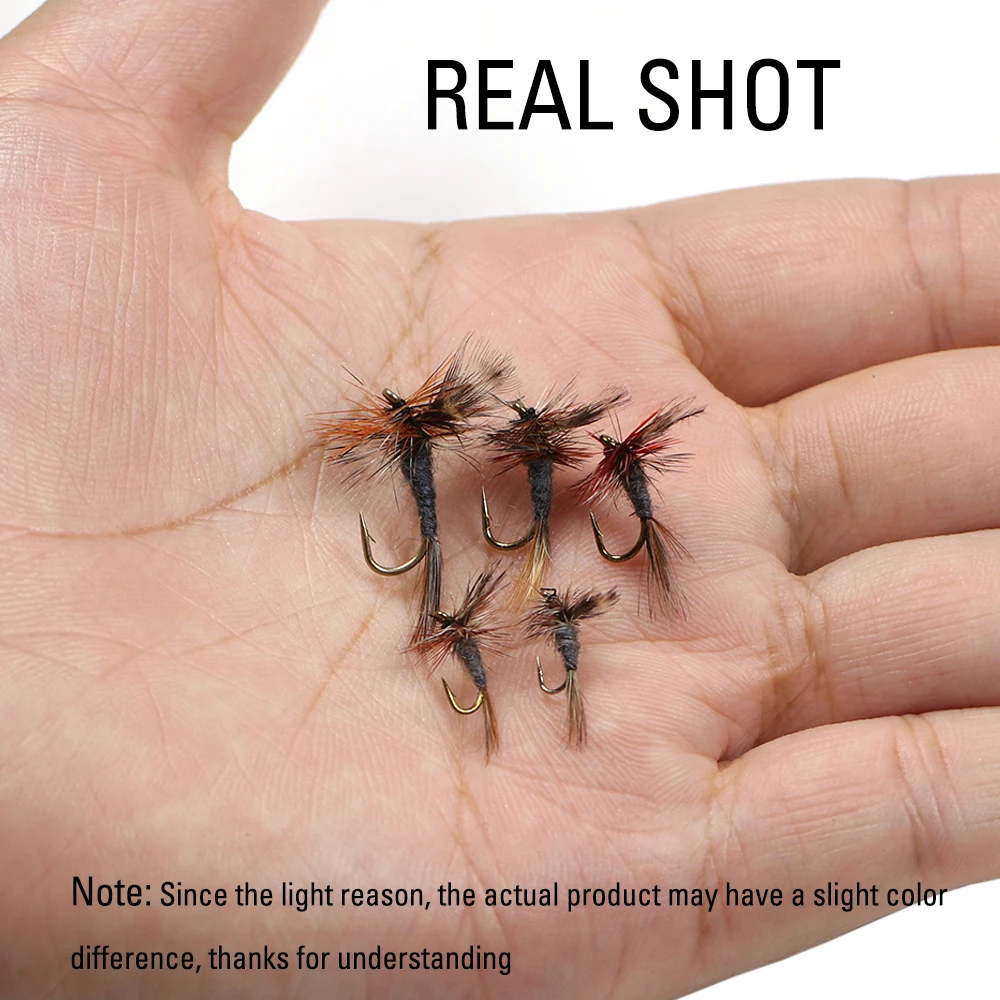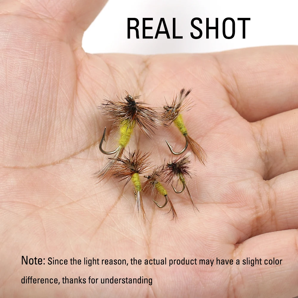 6 piezas#10 -#18 señuelo de pesca de trucha Mayfly para adultos, moscas secas amarillas/grises Adams, Caddis Midge