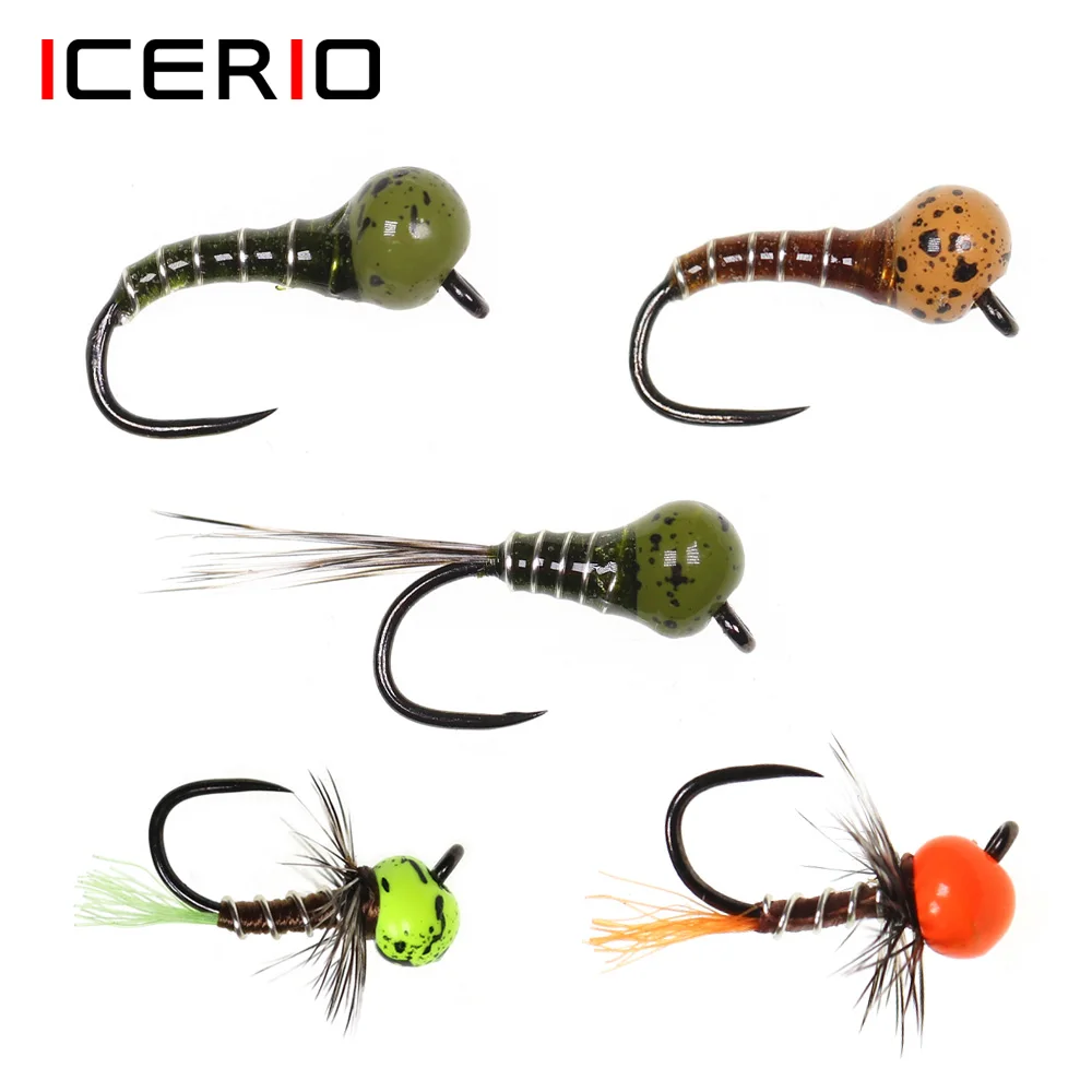 ICERIO 6 uds plantilla Offset tungsteno Euro Ninfa sin púas Perdigon mosca hundimiento rápido Ninfa húmeda para trucha Grayling cebo de pesca Pesca