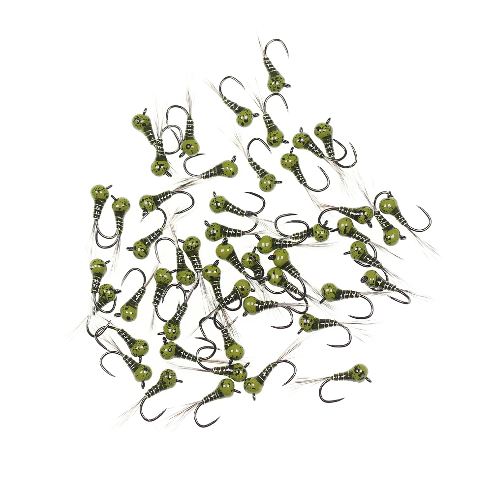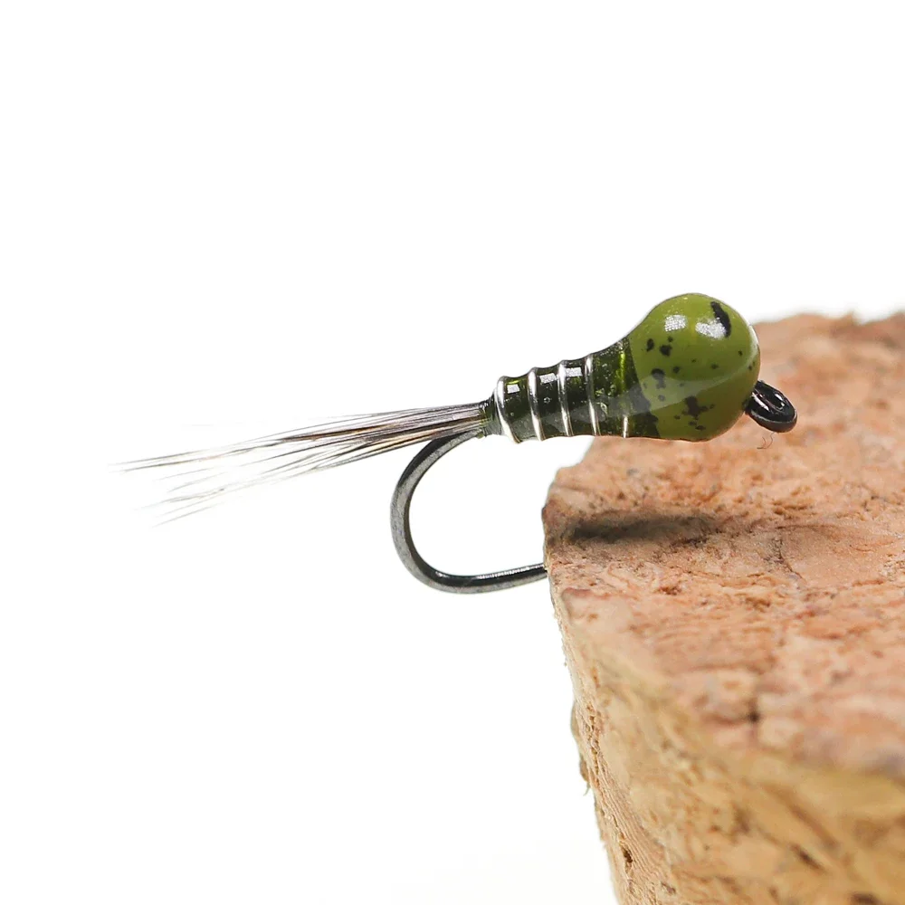 Estas ninfas se hunden rápidamente con ganchos de plantilla y cuentas de tungsteno compensadas.Si bien se utilizan habitualmente como moscas de ninfas de estilo europeo, estos patrones son muy efectivos bajo los indicadores de frappe.Tienen a deslizarse sobre las rocas y minimizar los enganches aunque son pesados y entren en contacto frecuente con el fondo.hundimiento rápido en aguas profundas, también se puede utilizar para pescar en hielo.