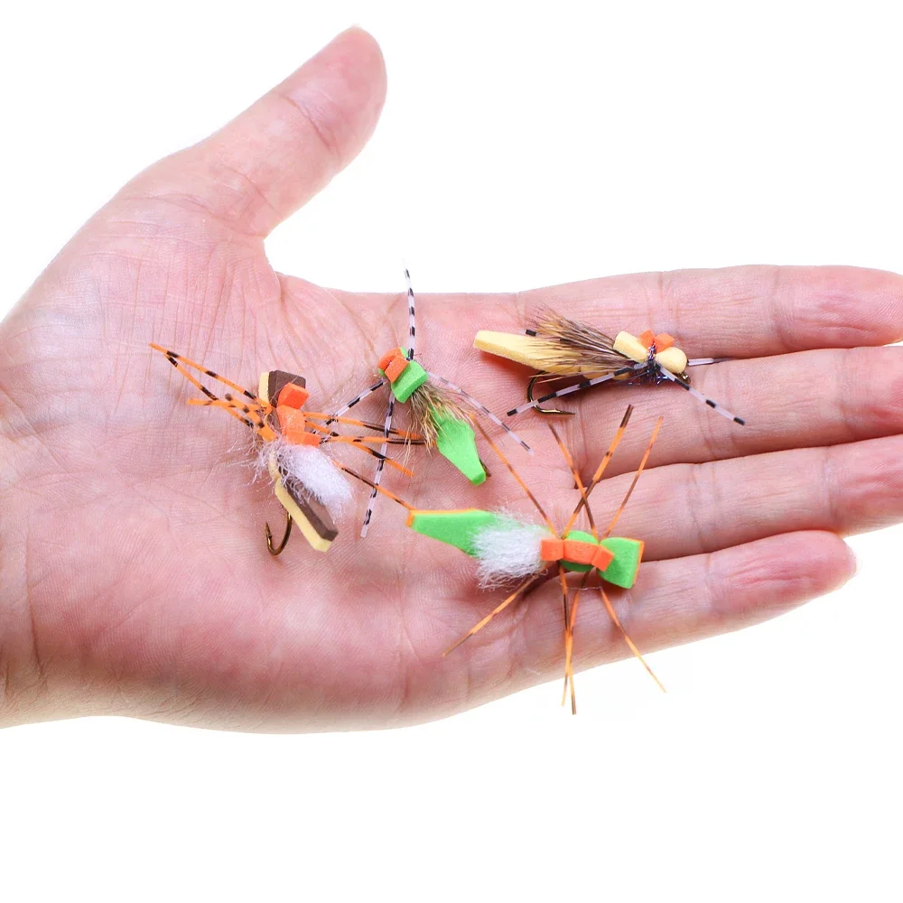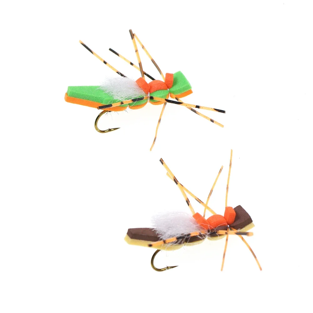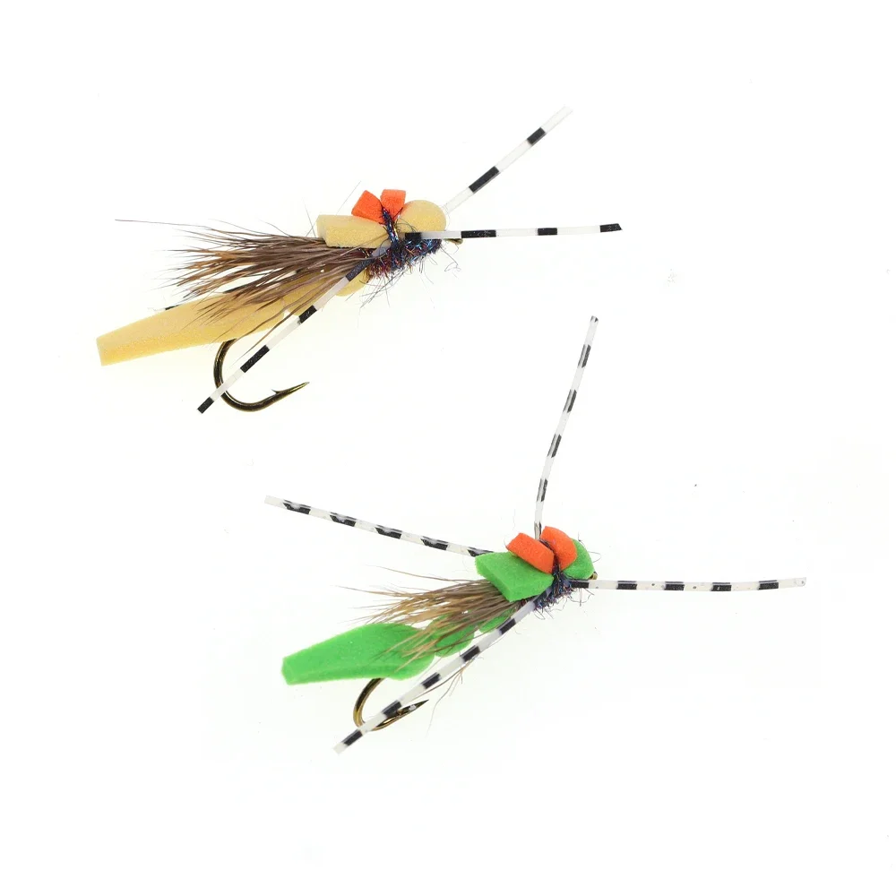 ICERIO 6 uds espuma de pesca con mosca saltamontes mosca seca jambas de goma pelo de ciervo flotante tolva Morrish trucha lubina Lucio salmón Señuelos de pesca