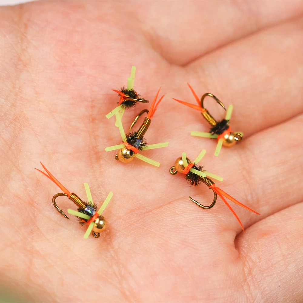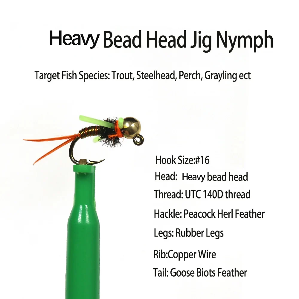 Las ninfas de jig son eficaces moscas húmedas que se caracterizan por cabezas de cuentas de tungsteno y cuerpos delgados. Se hunde rápidamente en la columna de agua y se usan comúnmente para la ninfas de estilo europeo.