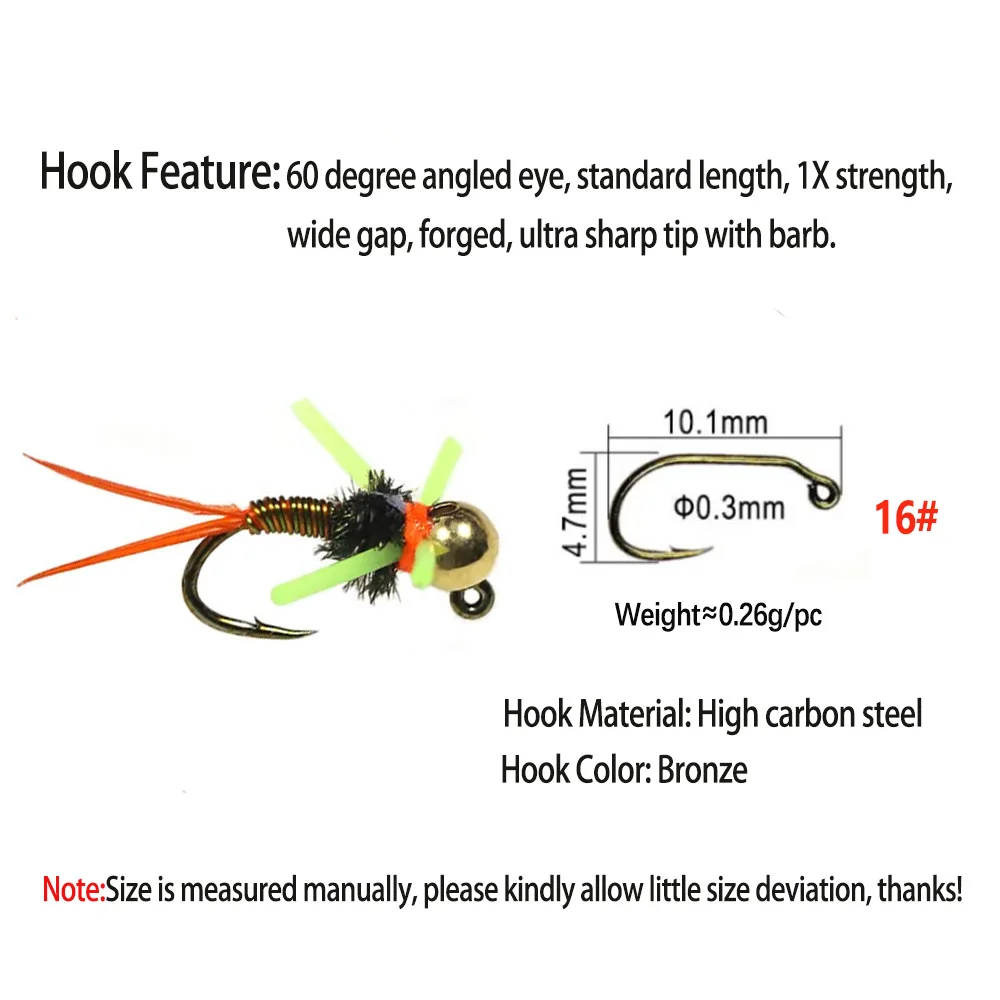 ICERIO 6 uds plantilla pesada con púas ninfa moscas de pesca con mosca pierna de goma hundimiento rápido húmedo Euro ninfa mosca trucha Señuelos de pesca cebo#16