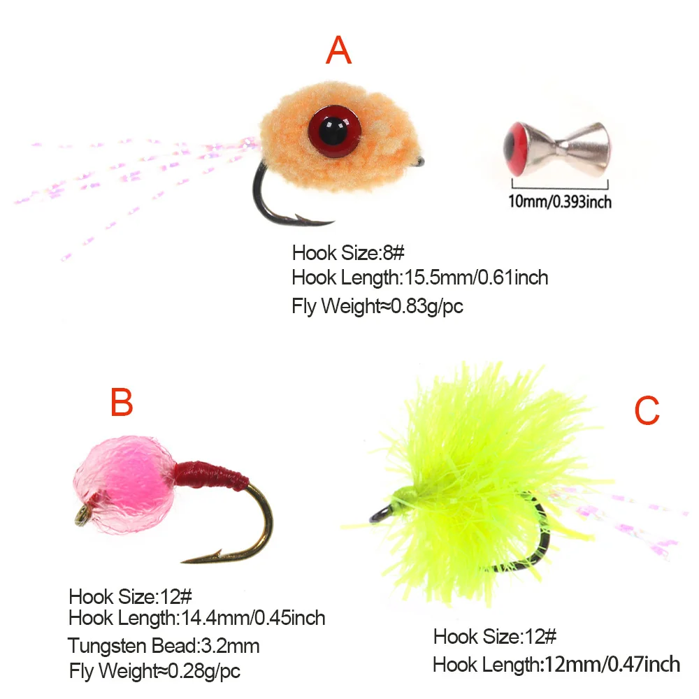 Una gran mosca para trucha, salmón y trucha de acero. Los huevos en general son una fuente alimenticia de muy alta proteína para estos peces y, a menudo, son lo único que comerán.Cuando la trucha se mueve sobre los huevos, este patrón puede ser lo necesario para atrapar su trucha trofeo.