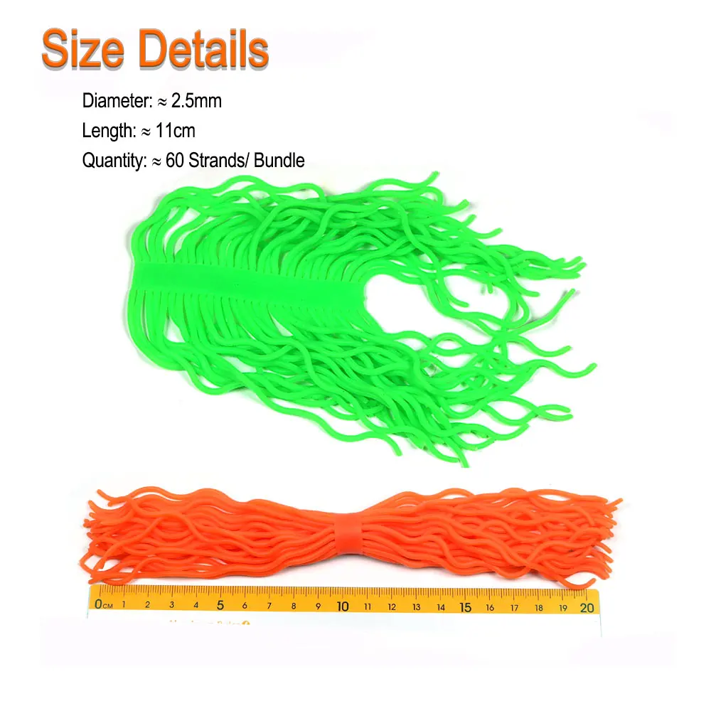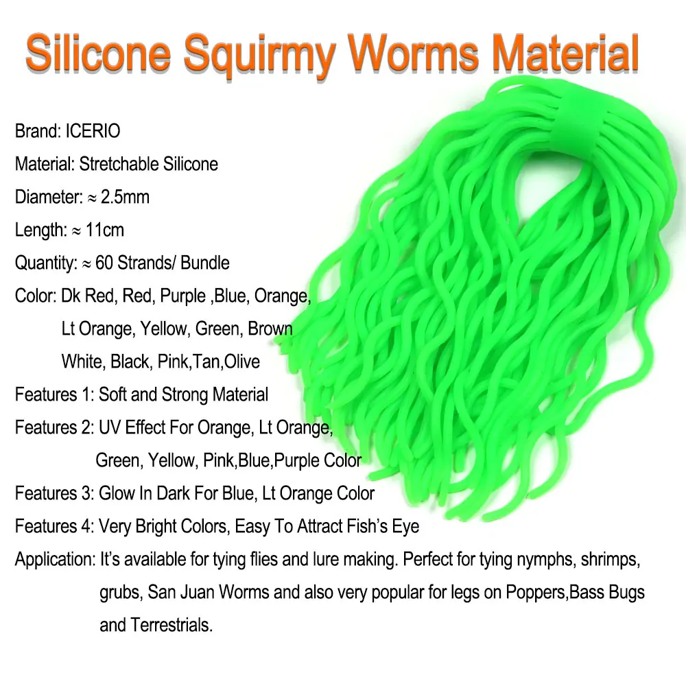 ICERIO 60 hebras/paquete Ver Squirmy de silicona Ver suave Ninfa Shrimps Grubs San Juan Ver Material para atar moscas Señuelos de pesca de trucha