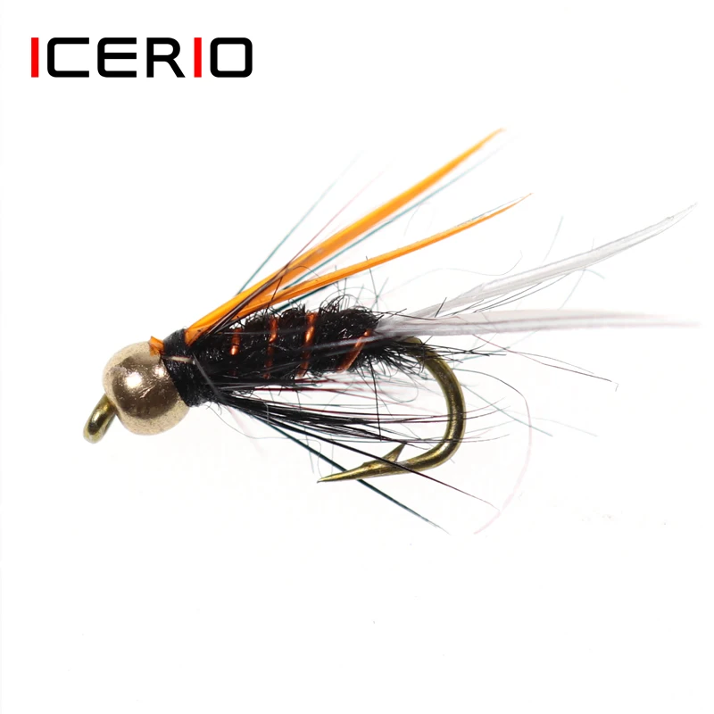 ICERIO 8PCS #12 Brass Bead Head Crazy Black Psycho Prince Nymph Fly
