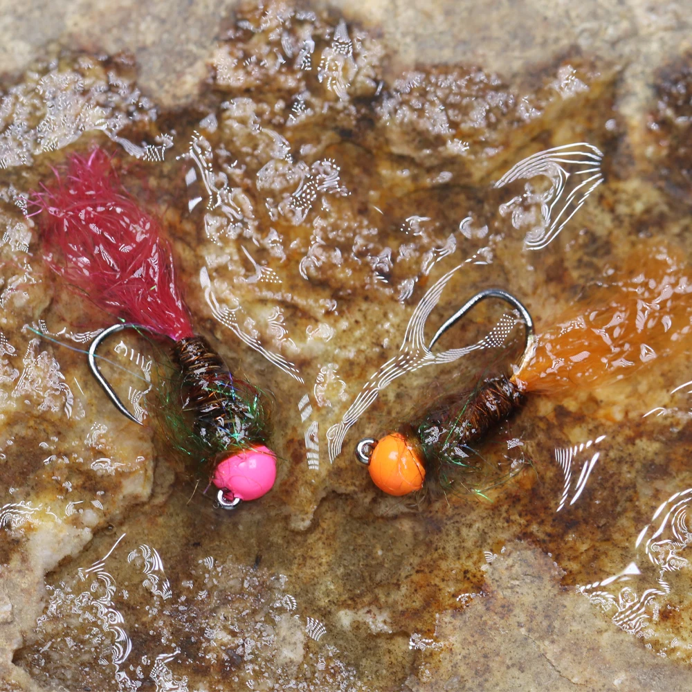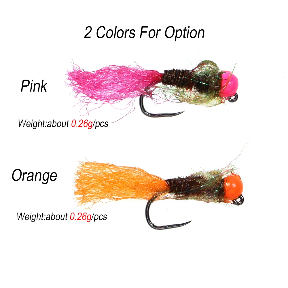 ICERIO 8 piezas#14 ranura de tungsteno UV cabeza de cuentas anzuelo sin púas ninfa de hundimiento rápido mosca para Señuelos de pesca de salmón de trucha Steehead