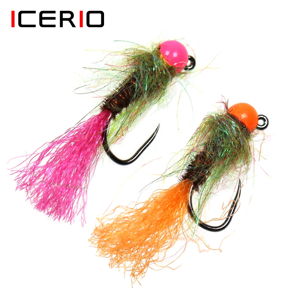 ICERIO 8 piezas#14 ranura de tungsteno UV cabeza de cuentas anzuelo sin púas ninfa de hundimiento rápido mosca para Señuelos de pesca de salmón de trucha Steehead