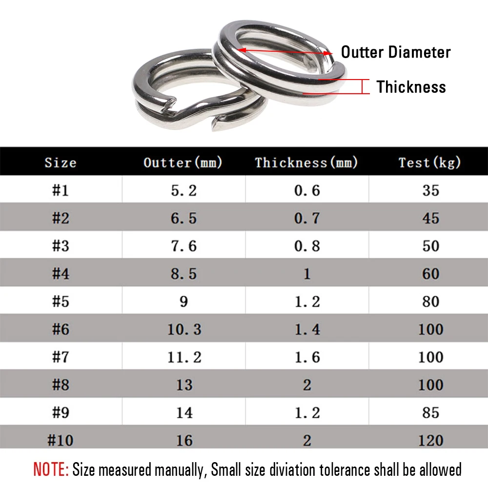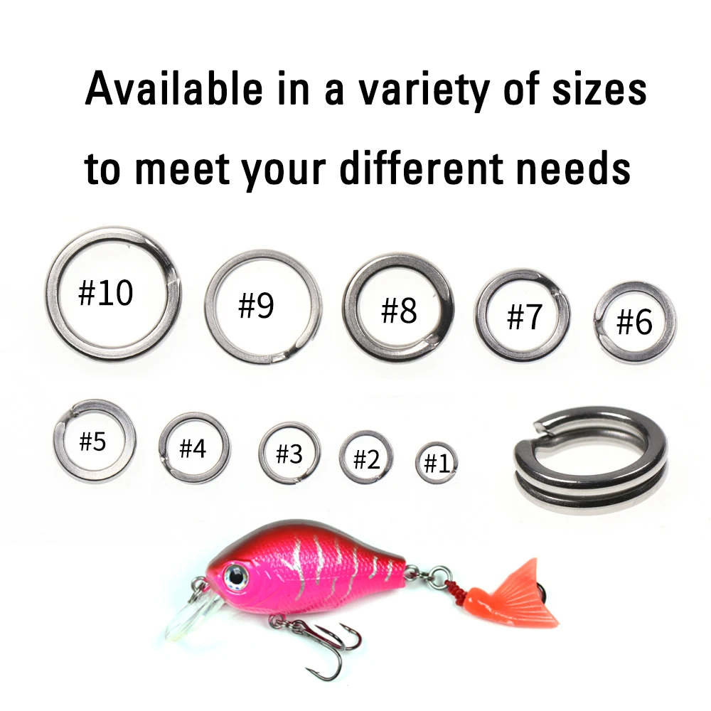 ICERIO-Anillo dividido de acero inoxidable, accesorio común de pesca, conector de señuelo de línea de pesca, tamaño 10 disponible