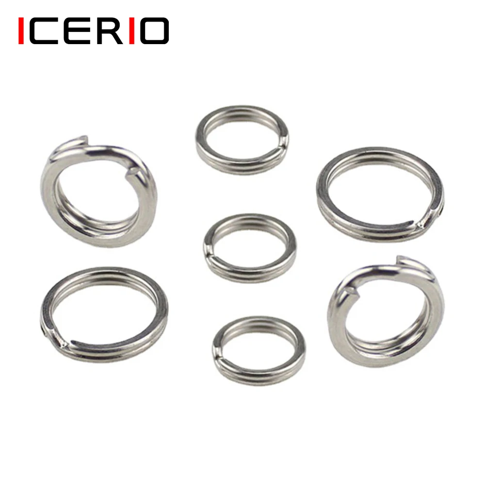 ICERIO-Anillo dividido de acero inoxidable, accesorio común de pesca, conector de señuelo de línea de pesca, tamaño 10 disponible