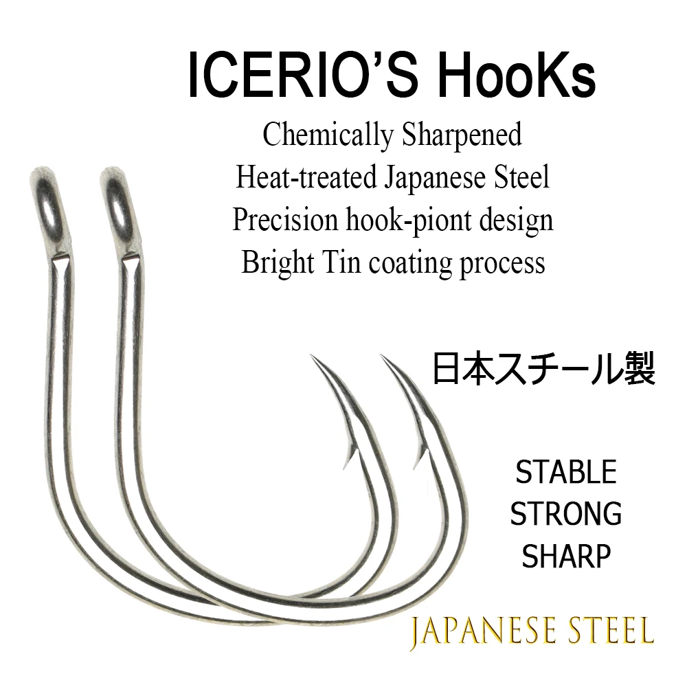 ICERIO 10/20 piezas de acero de alto carbono de estaño brillante, anzuelo de asistencia de Jigging lento, anzuelo anticorrosión para pesca en agua salada Pike JS-3