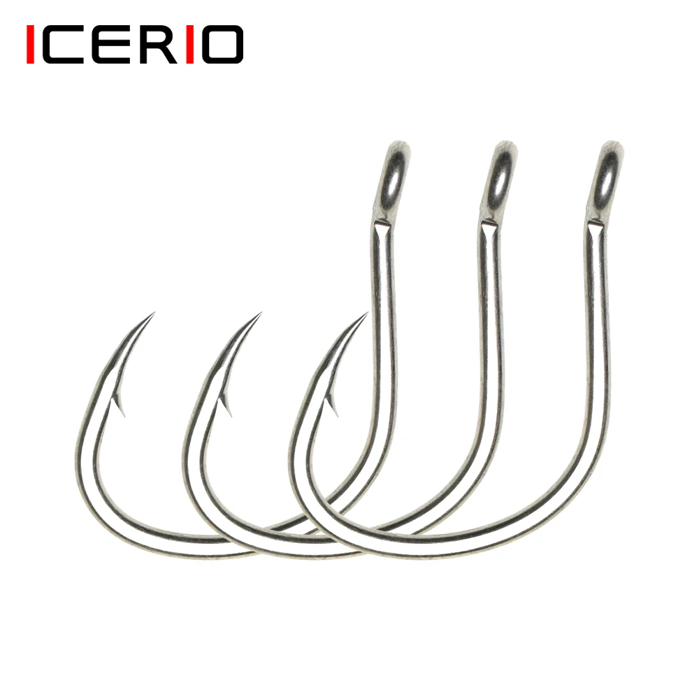 ICERIO 10/20 piezas de acero de alto carbono de estaño brillante, anzuelo de asistencia de Jigging lento, anzuelo anticorrosión para pesca en agua salada Pike JS-3