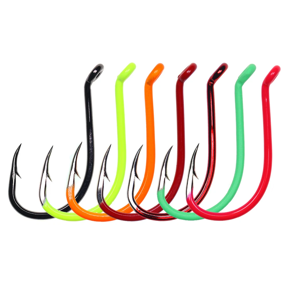 ICERIO anzuelo de agua salada de acero de alto carbono luminoso verde UV Fluo punto de compensación pulpo anzuelos de pesca tamaño#10~#10/0