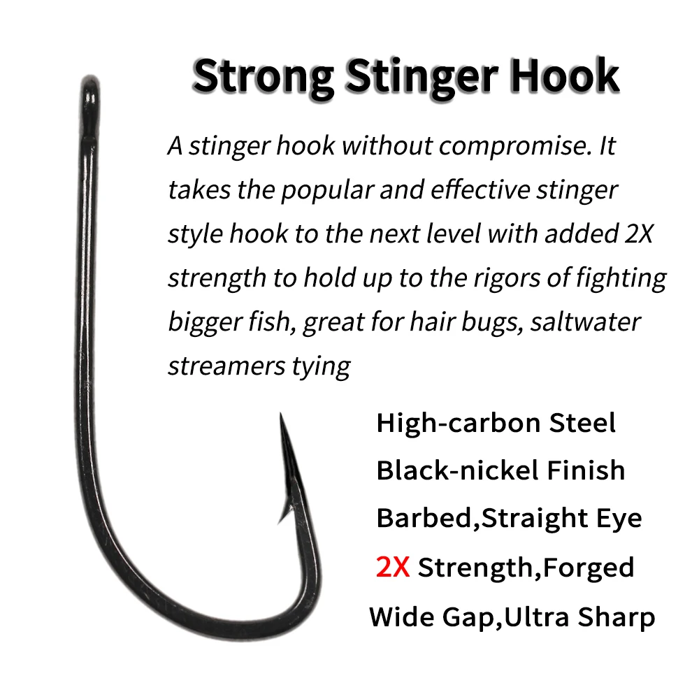 ICERIO 20 piezas 2X gancho de estinger de boca ancha de fuerza gancho de atado de moscas fuerte para serpentinas y insectos de pelo Lucio Salmón lubina pesca