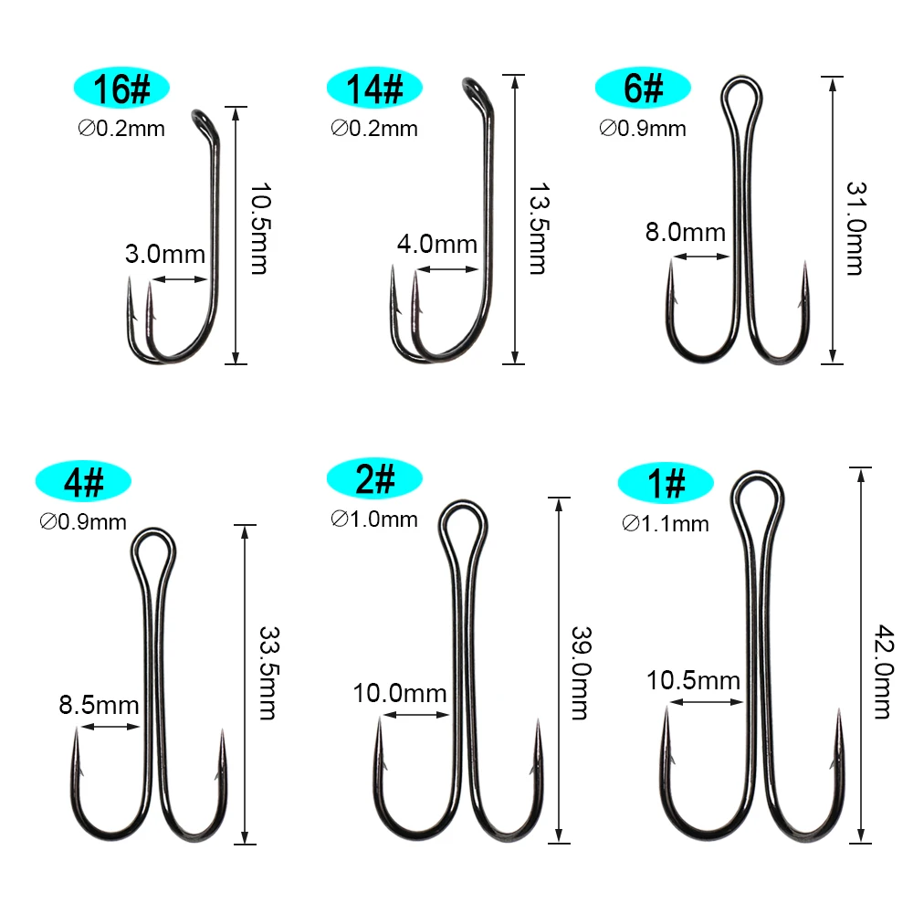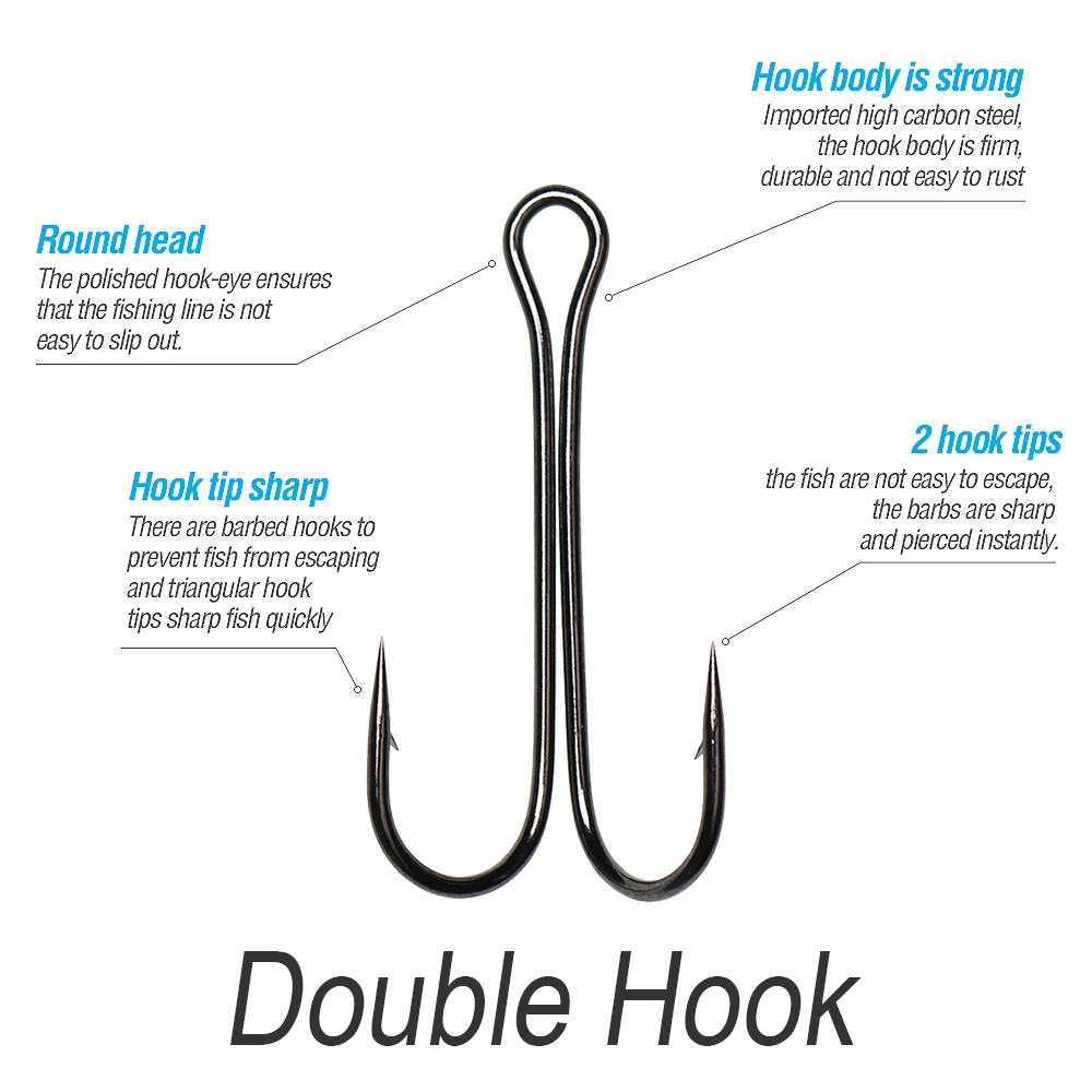 Anzuelo de pesca doble ICERIO de 10 piezas, anzuelo doble de rana, anzuelo de pesca sin Weedless, anzuelo de pesca para señuelo suave, cabeza Jig