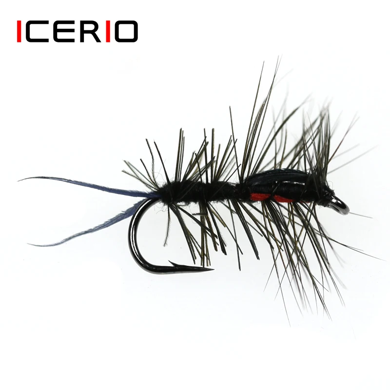 ICERIO-anzuelo de pesca con mosca, 8 unidades, cuerpo negro, Caddis, trucha de piedra, señuelo de pesca con mosca, cebos #8