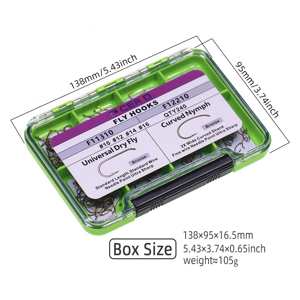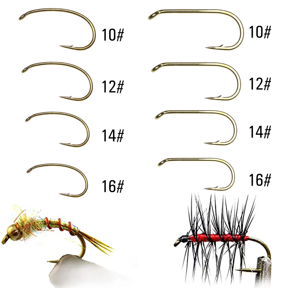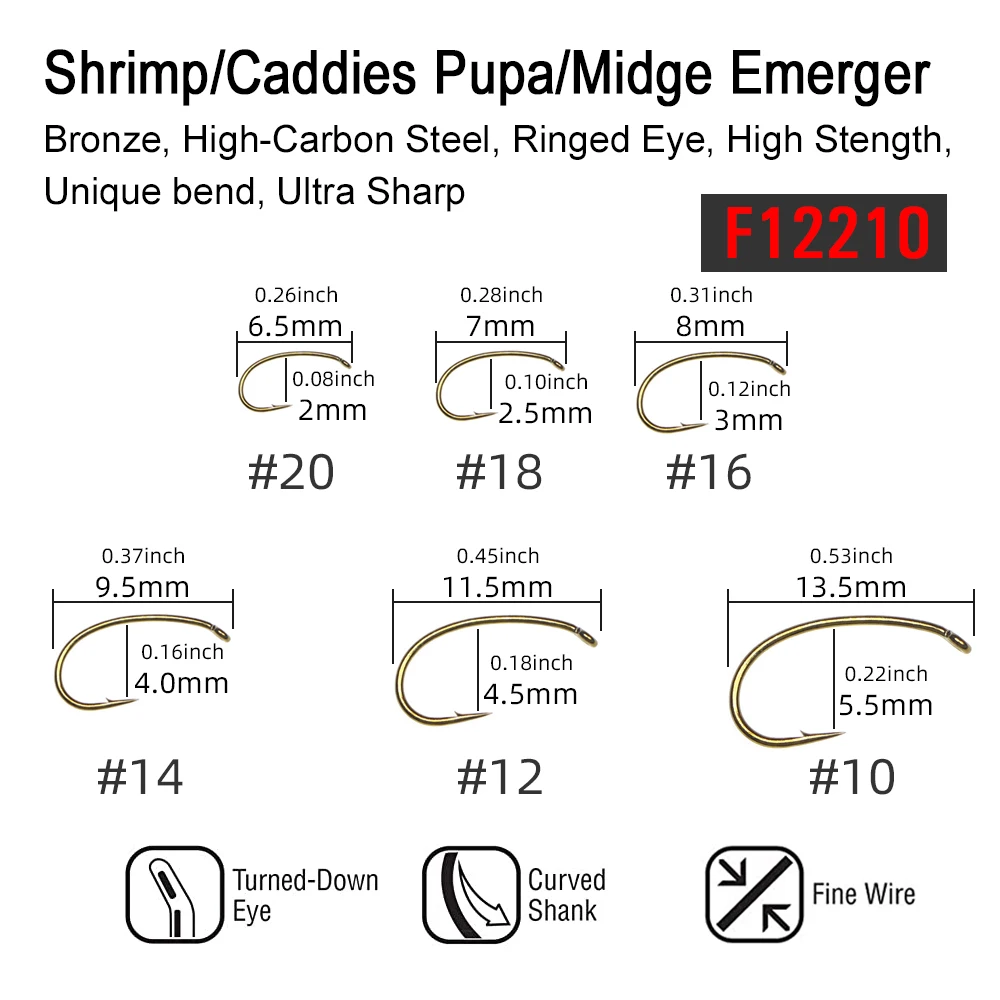 Anzuelos de atado de moscas con acabado de bronce ICERIO 240, con caja seca, húmeda, ninfa, camarón, Caddis, pupae, moscas, anzuelo de pesca Scud checo Curvo