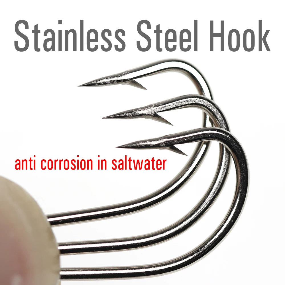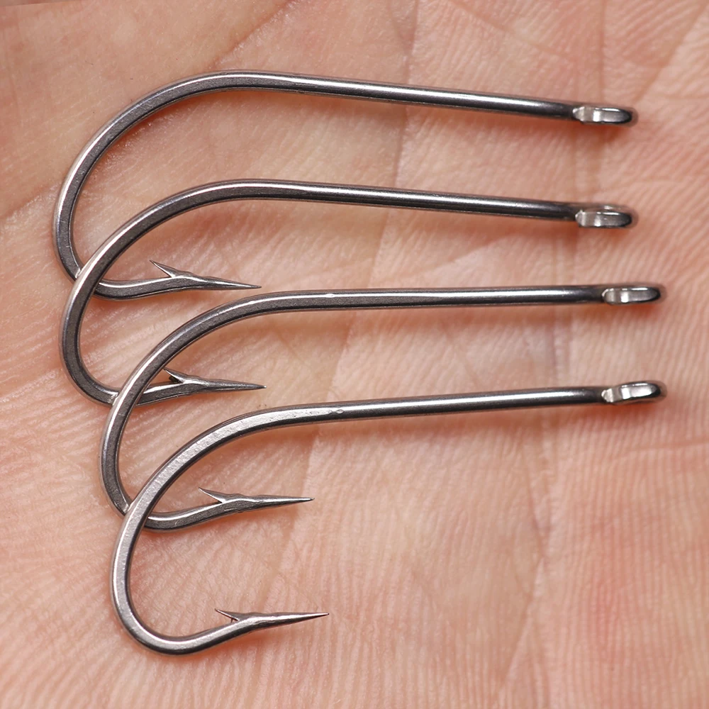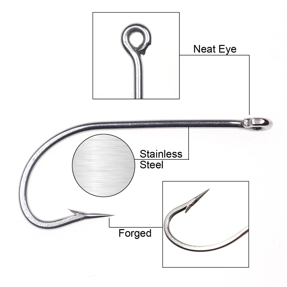 ICERIO 50PCS Acero inoxidable O'SHAUGHNESSY Vástago largo Anzuelo de pesca de agua salada Clouser Minnow Sculpin Streamer Anzuelos para atar moscas