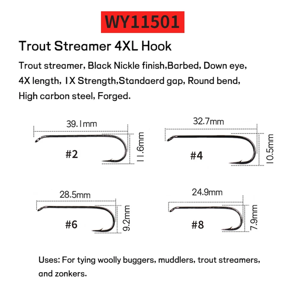 WY11501 4XL Gancho de mosca de serpentina de vástago largo