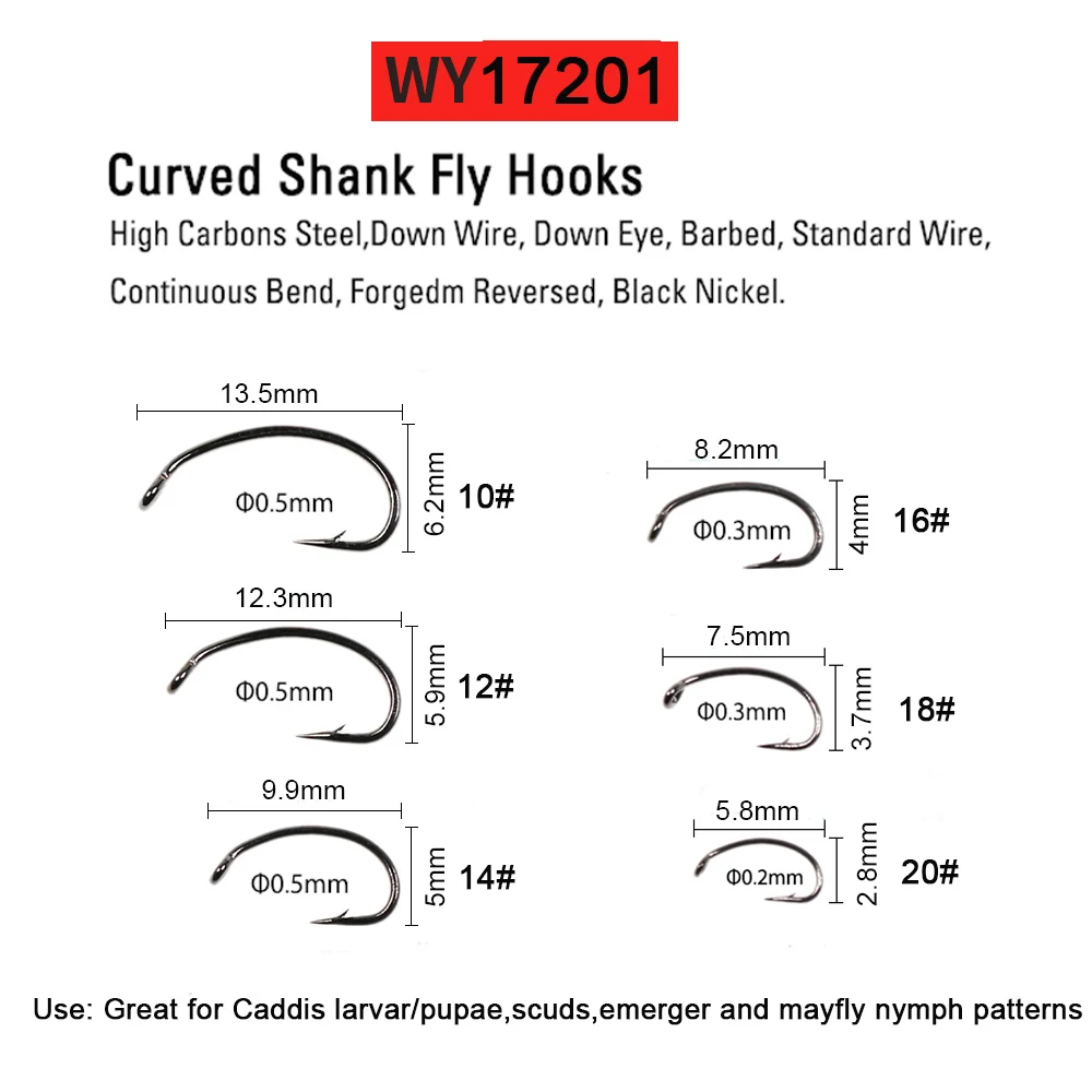 WY15001 BL Curved Ninfa Caddis Gancho Checo