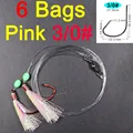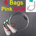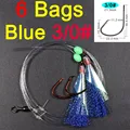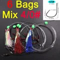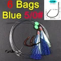 ICERIO-aparejo de pesca de agua salada, aparejo de cola de Flashabou, aparejos de pargo con barril giratorio, 6 bolsas, 2 ganchos circulares, 3/0 #4/0 #5/0 #