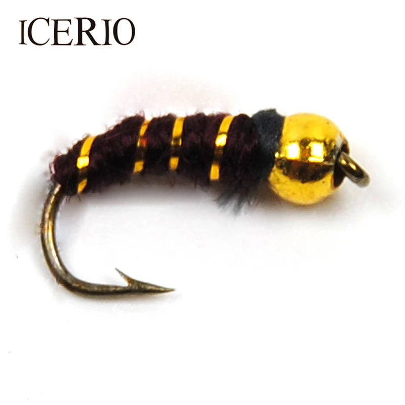 ICERIO-Cabeza de cuentas doradas de plástico, ninfa/Midge, pequeños insectos para trucha, besugo, mosca azul, pesca, tamaño #14, 10 Uds.