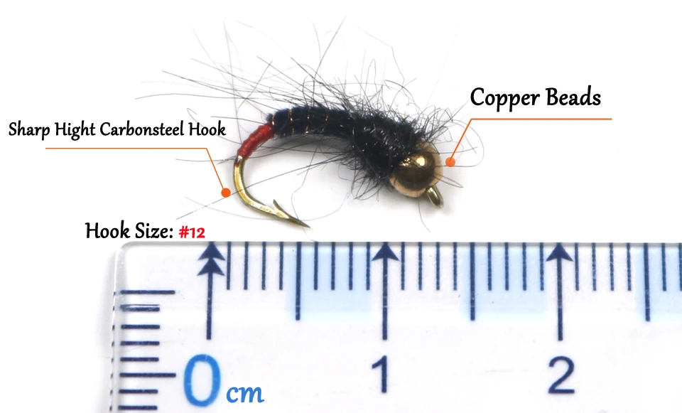 Cola de faisán negro río Nymph Trabajadores experimentados atados a mano moscas de pesca Receta para moscas: Tamaño del gancho: tamaño 12 Hilo: hilo negro 8/0 y Rojo No5 Cuerpo: cola de faisán negro, alambre de cobre, doblaje negro. Lista del paquete: 8 unids/caja