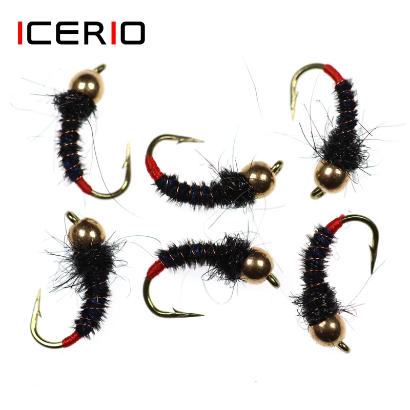 ICERIO cabeza de cuenta de latón de 8 piezas cola de faisán negro río Nymph