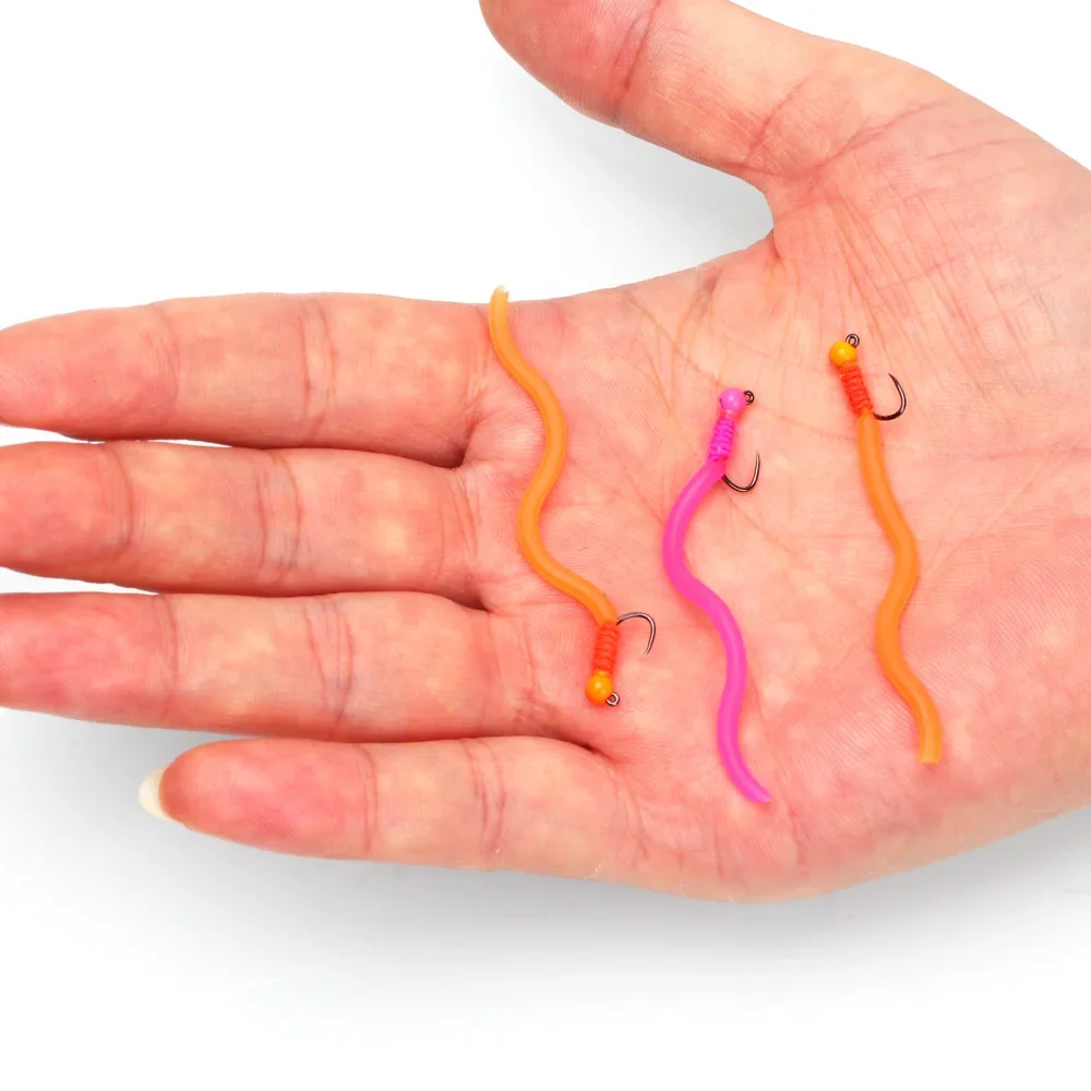 Quizás ninguna mosca haya sufrido la pesca con caña como el gusano squirmy. El movimiento del material squirmy hace loco la trucha y combinando que con un anzuelo y una cuenta de tungsteno hace que este patrón sea aún más mortal. Si hay truchas en un agua. comer un gusano squirmy.