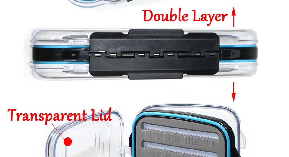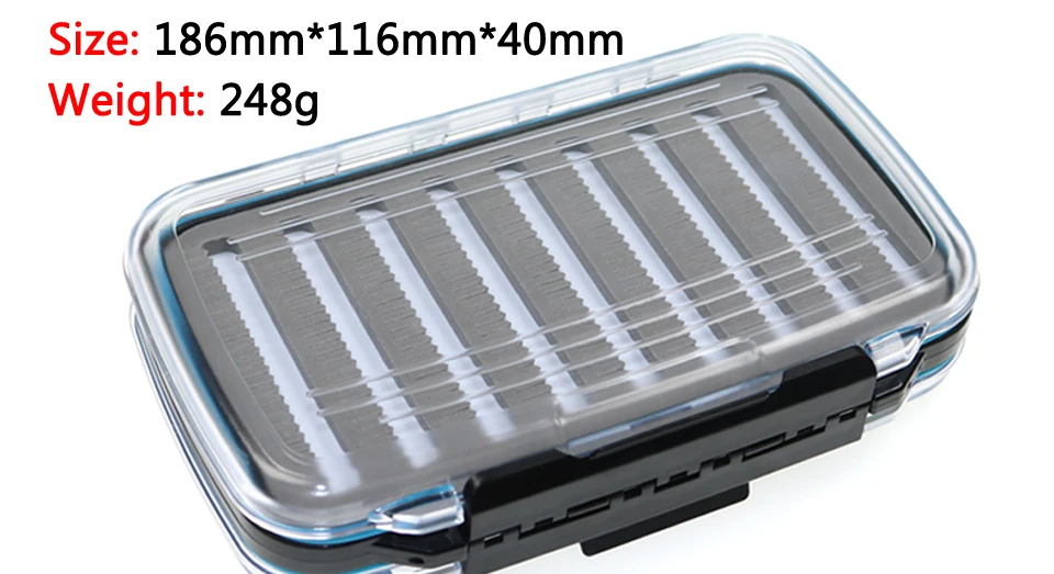 ICERIO-caja de pesca con mosca de doble cara, Caja impermeable de espuma con hendidura de 186mm * 116mm * 40mm, ninfa, moscas húmedas y secas, aparejos de pesca con mosca, 1 pieza
