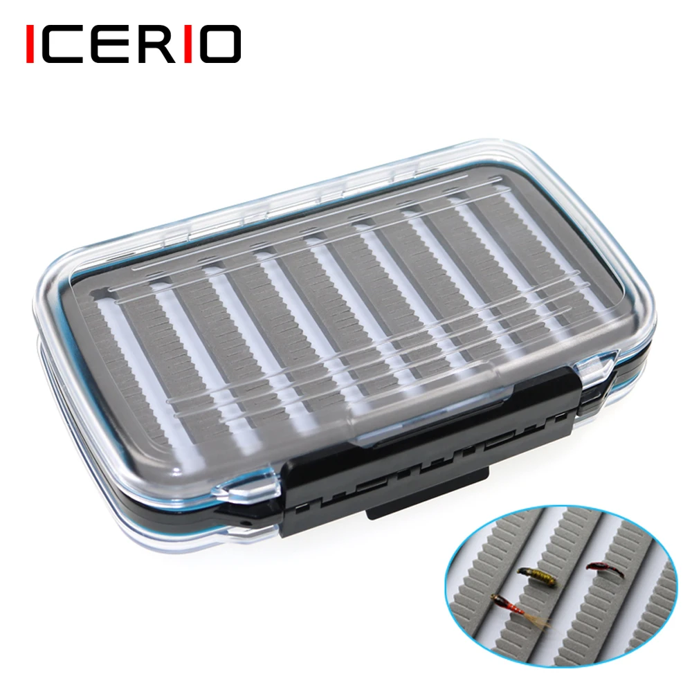 ICERIO-caja de pesca con mosca de doble cara, Caja impermeable de espuma con hendidura de 186mm * 116mm * 40mm, ninfa, moscas húmedas y secas, aparejos de pesca con mosca, 1 pieza