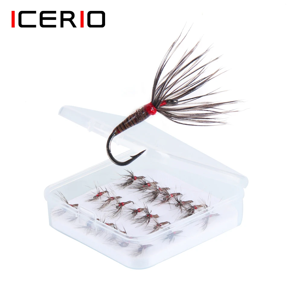 ICERIO 21 unids/caja Expoxy Body cuello rojo Tenkara moscas#14#16#18 cebos de señuelo de pesca Tenkara con mosca seca Hackle inversa surtida