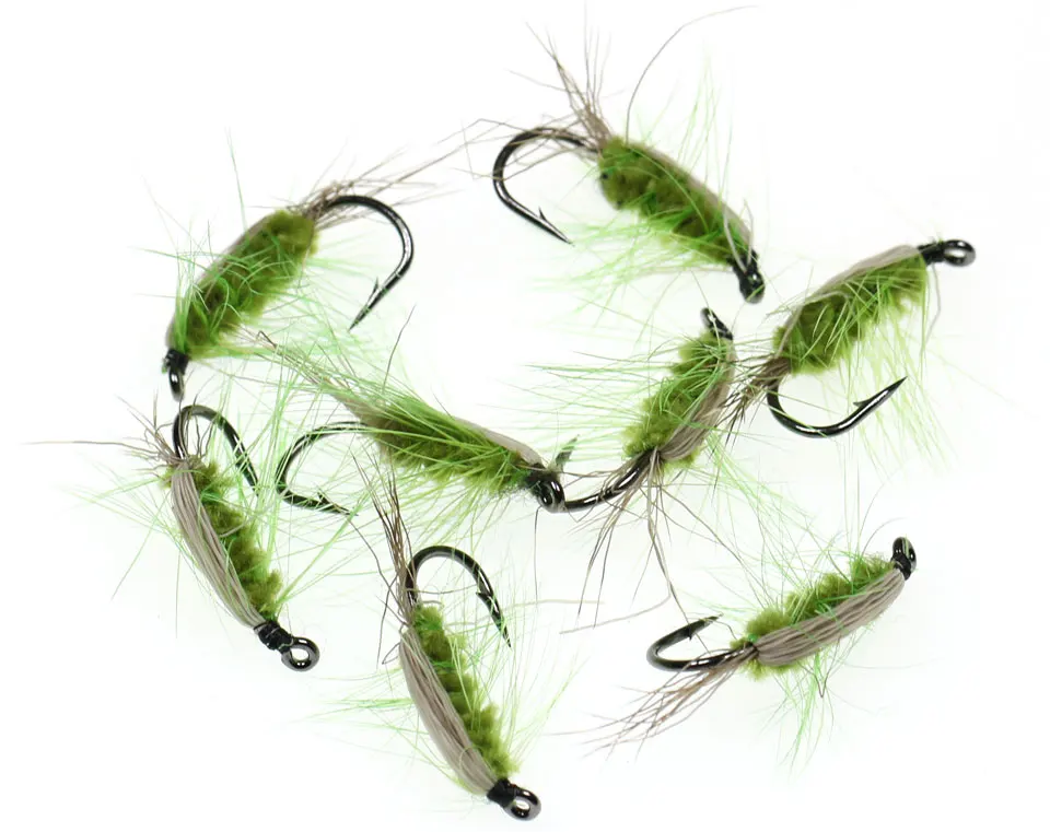 ICERIO 8 piezas cuerpo verde lombriz marrón Caddis Nymph mosca ciervo pelo escarabajo trucha mosca pesca mosca cebo #6