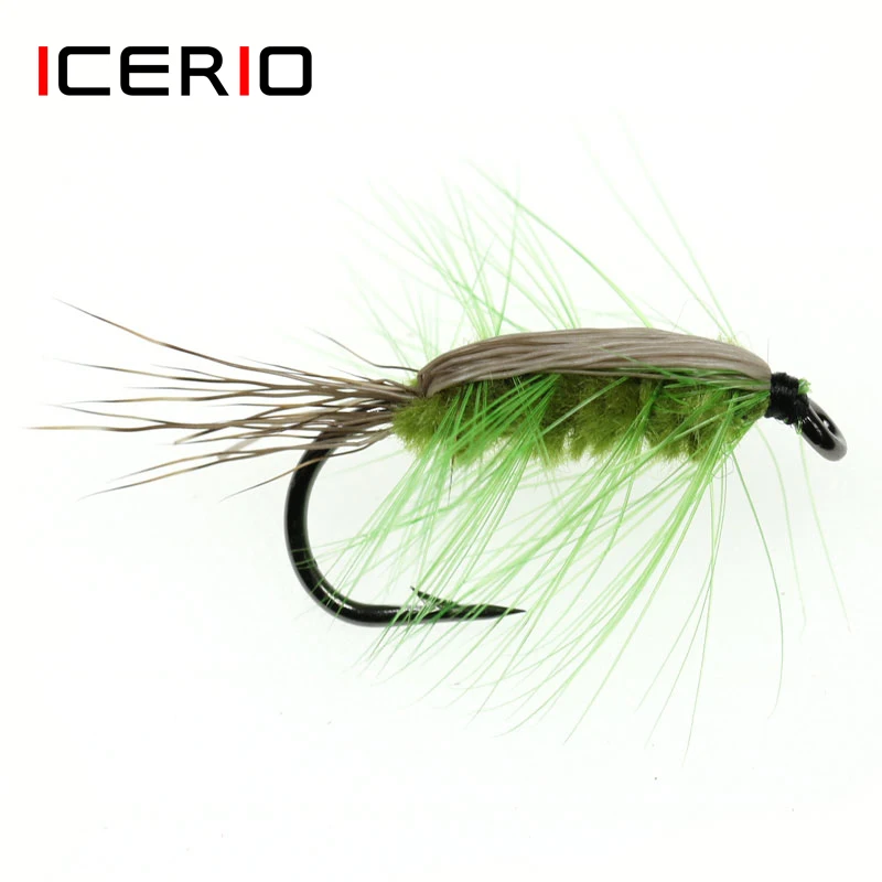ICERIO 8 piezas cuerpo verde lombriz marrón Caddis Nymph mosca ciervo pelo escarabajo trucha mosca pesca mosca cebo #6