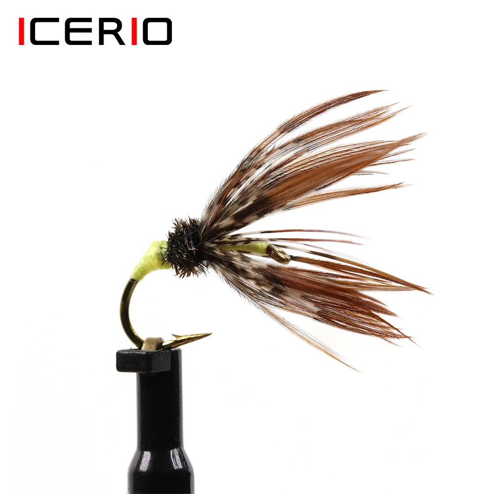 ICERIO 8 piezas nuevo Kebari moscas Hackle Tenkara trucha mosca Señuelos de Pesca #12 Tenkara/Kebari Fly