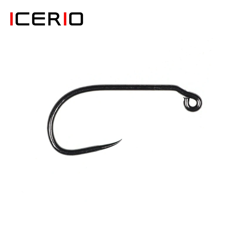 ICERIO, 30 Uds., ojo en ángulo de 60 grados, hueco ancho, anzuelo sin púas, anzuelo para atar moscas de ninfa, anzuelo para trucha de acero al carbono, acabado en negro y níquel